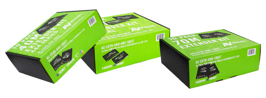 Umweltbewusste Möglichkeit, unsere branchenführenden HDMI-Extender zu kaufen: 10er-Pack-Kits. Ab sofort erhalten Sie unsere beliebtesten Extender – AC‑EX40‑444‑KIT, AC‑EX70‑UHD‑ARC‑KIT und AC‑EX70‑UHD‑KIT – als praktisches Großpack mit reduzierter Verpackung. Das minimiert nicht nur Abfall, sondern vereinfacht auch die Installation bei großen Projekten – eine Wahl, die sowohl praktisch als auch umweltfreundlich ist.