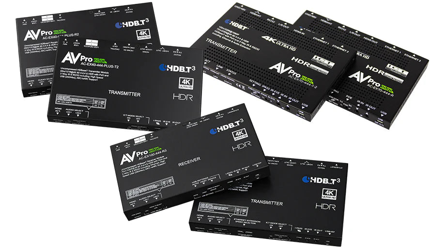 AVPro Edge bietet Extender für jede Art von Installation – vom revolutionären 8K-Fiber-Extender bis hin zu unserer Spitzenserie 444, die 18 Gbps Datenrate, 4K-Auflösung, 60 Bilder pro Sekunde, 4:4:4-Farbraum mit High Dynamic Range und Wide Color Gamut unterstützt, bis hin zu unserem kompakten 10 Gbps 70 M Kit. Unsere Extender sind auf Leistung und Langlebigkeit ausgelegt – selbst in den anspruchsvollsten, installationskritischen Umgebungen.