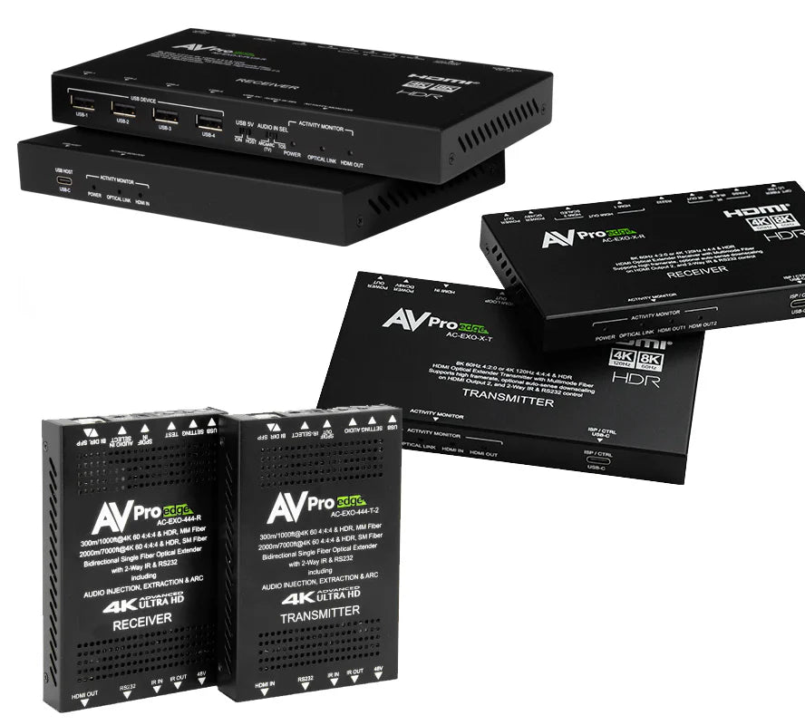 AVPro Edge baut sein Portfolio an weltweit ersten 8K-Produkten weiter aus – diesmal mit dem neuen AC-EXO-KIT, einem HDMI-2.1-Extender, der Multi-Mode-Fasern nutzt, um 8K-Signale bis zu 300 Meter vom Sender entfernt über OM4 zu übertragen – alles mit Lichtgeschwindigkeit.
