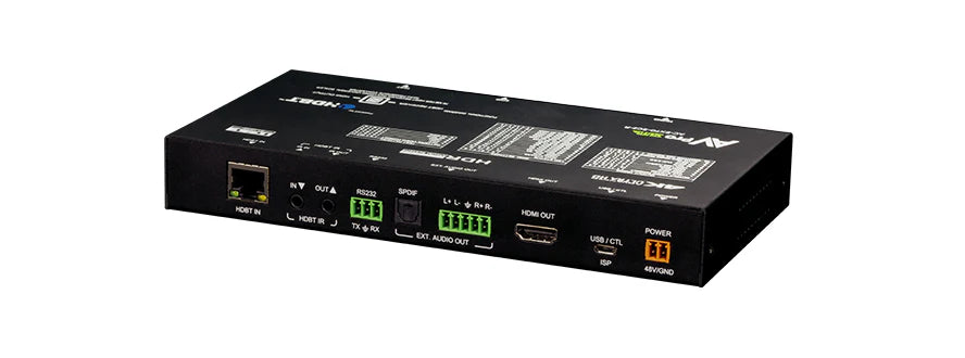 Dieser HDBaseT-Receiver/Scaler ist bereit für 18Gbps 4K HDR-Signale. Auch bei 480-, 720- oder 1080-Displays sorgt er für das optimale Bild. Er bietet die Flexibilität, Up-/Downscaling zu steuern, EDID-Probleme (inkl. 4K HDR EDIDs) zu lösen und Audio direkt aus dem Stream auszulesen.