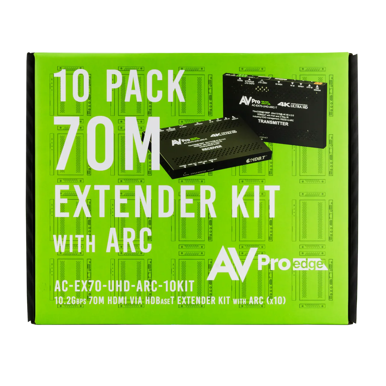 Das AC-EX70-UHD-ARC-KIT besteht aus einem Sender und einem Empfänger, die über ein einziges Cat-6a/7 UTP/STP-Kabel miteinander verbunden werden. Wird ein HDMI-Signal an den Sender angeschlossen, können HDMI-Signale bis zu 70 Meter bei 1080p und bis zu 40 Meter bei 4K60 4:2:0 bzw. 4K30 4:4:4 übertragen werden. Das Kit löst typische Herausforderungen im kommerziellen und privaten Bereich bei der Verteilung hochwertiger 4K-UHD-Inhalte vom Rack zum Display – mit der zusätzlichen Möglichkeit, Audiosignale bidirektional über den HDMI Audio Return Channel (ARC) zu übertragen.