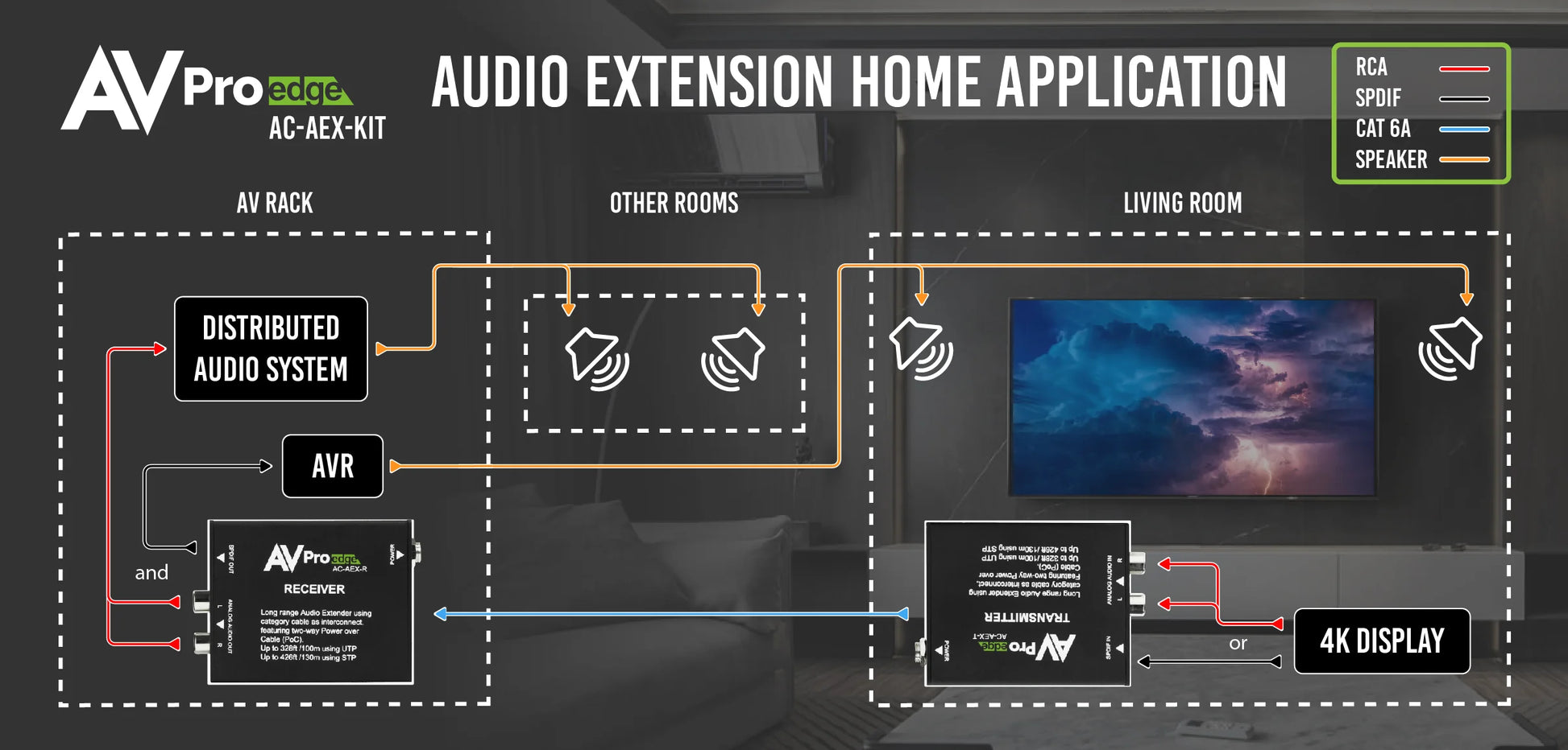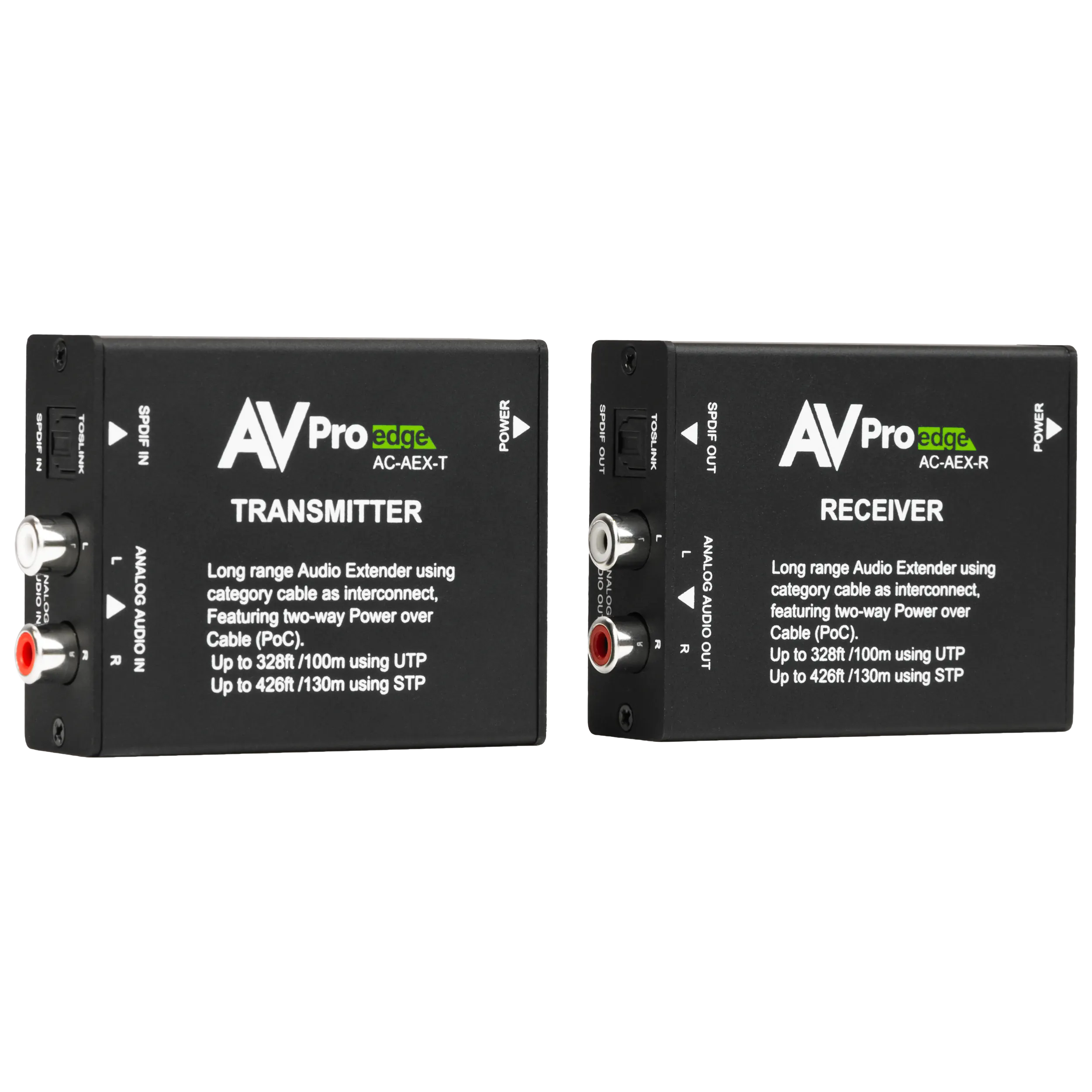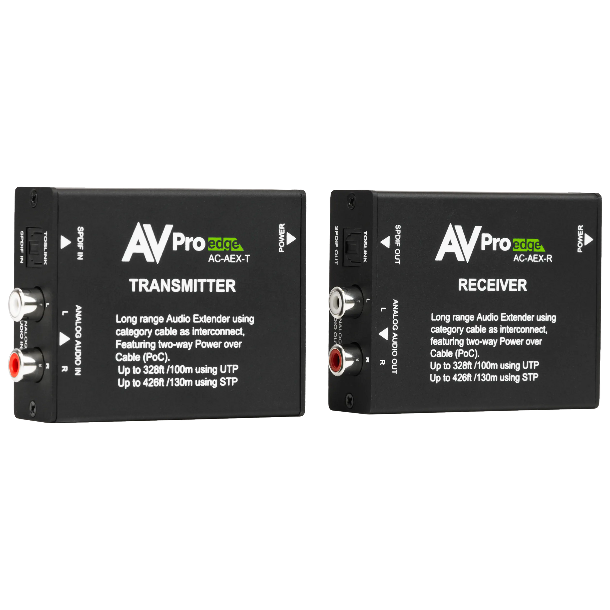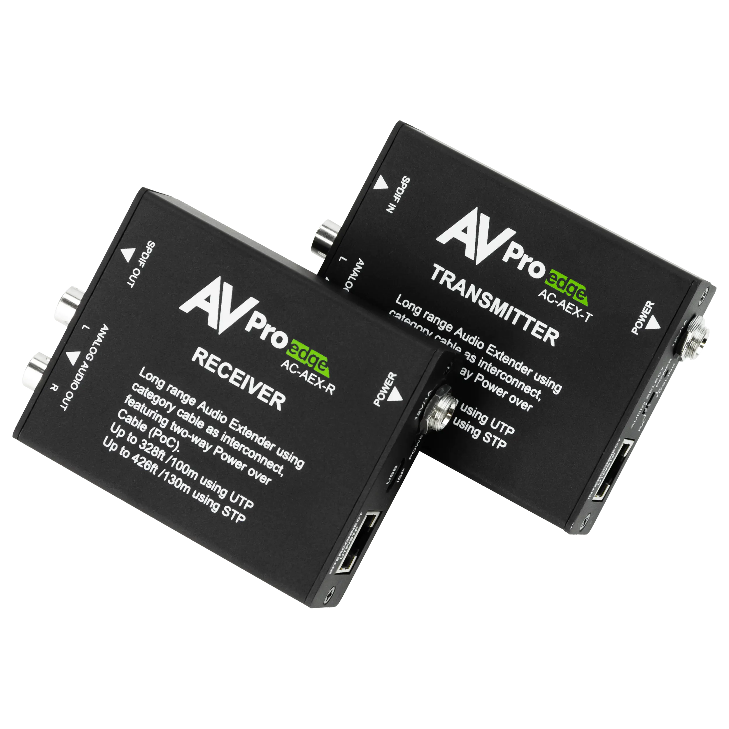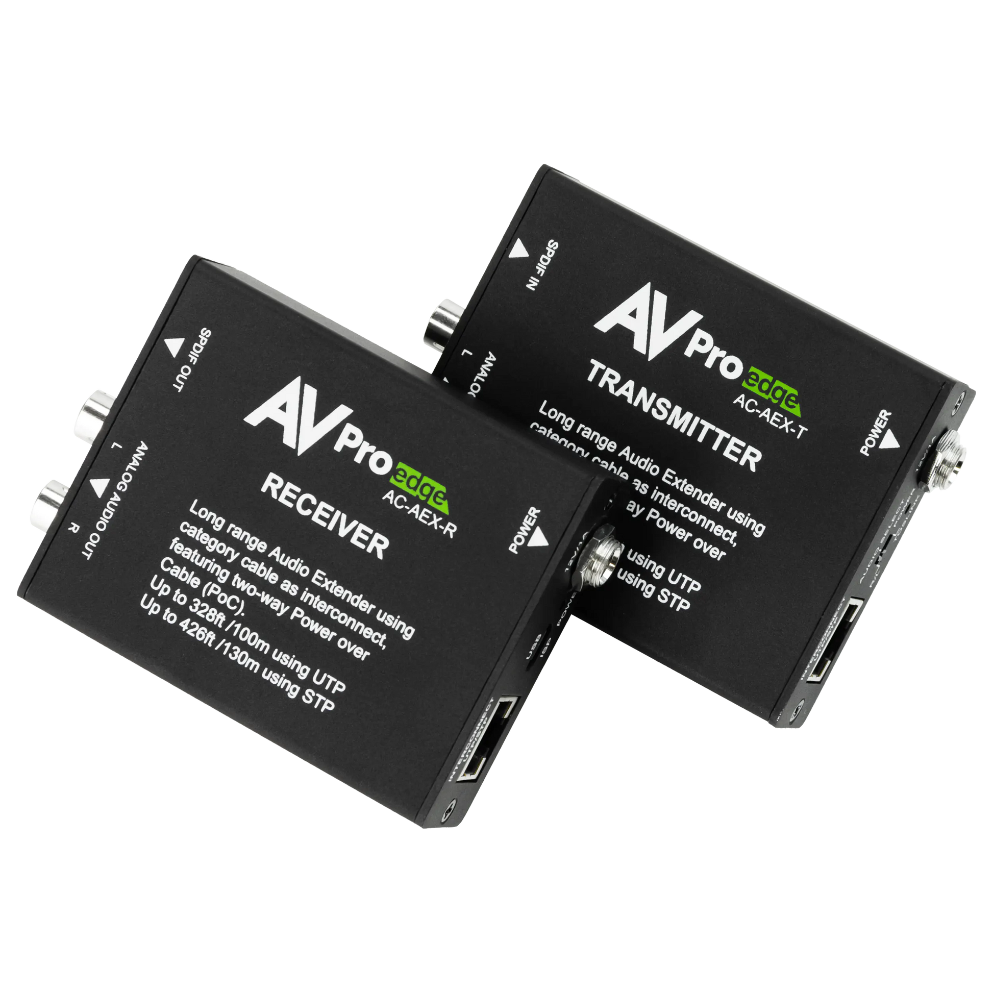 Der AVPro Edge AC-AEX-KIT ist ein professioneller Audio-Extender, der es Integratoren ermöglicht, unkomprimierte Stereo-Audiosignale über Entfernungen von bis zu 100 Metern zu übertragen.