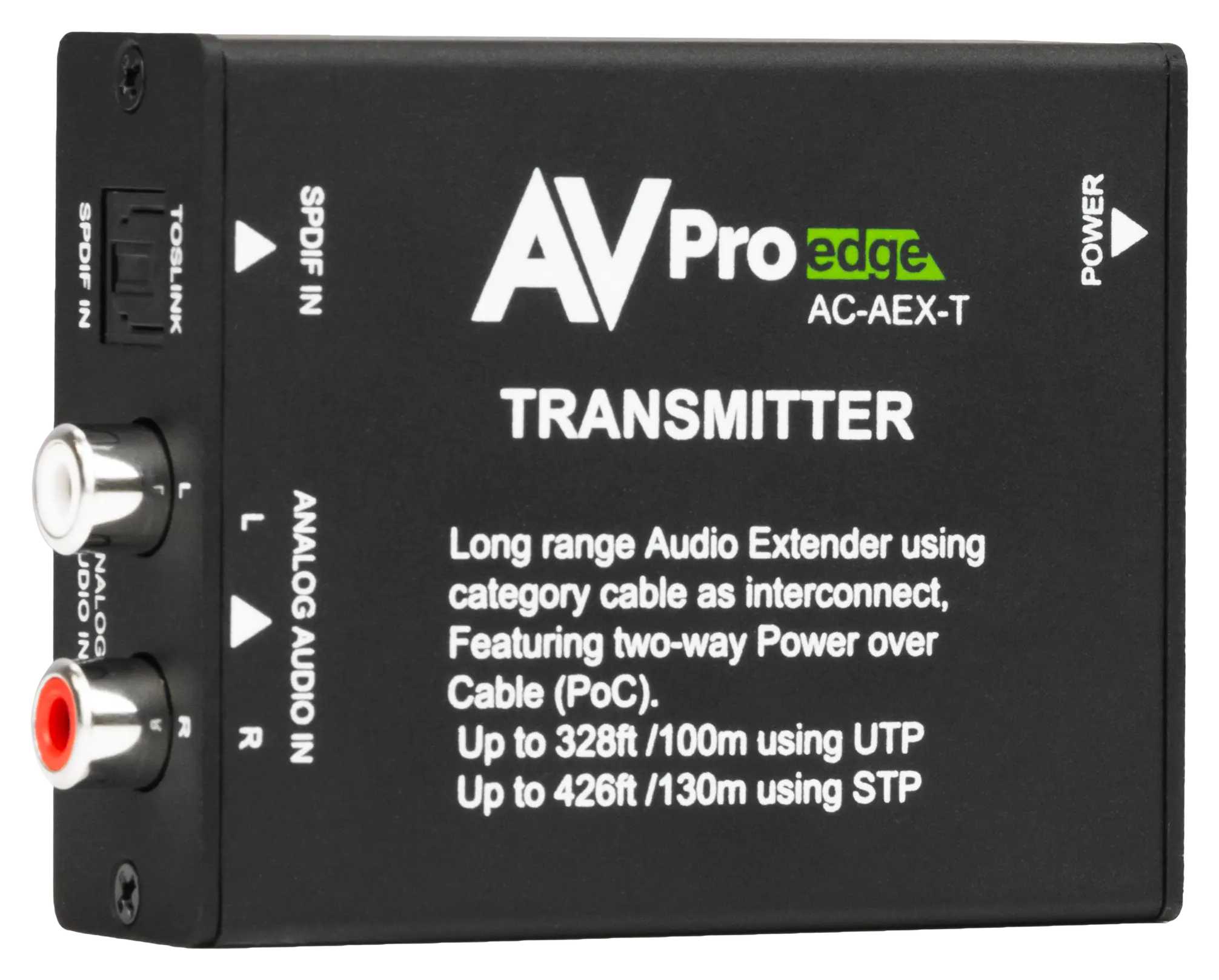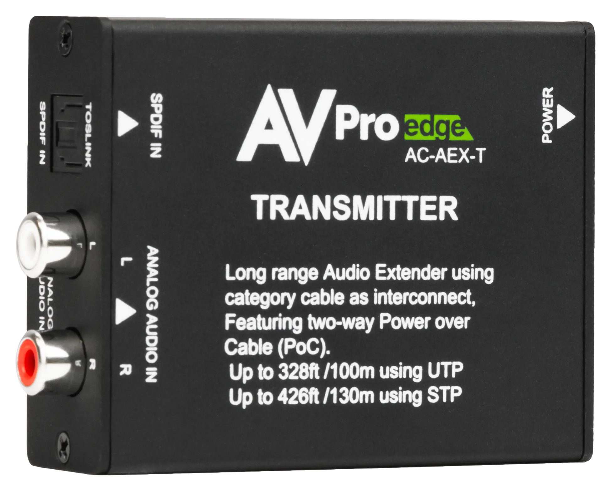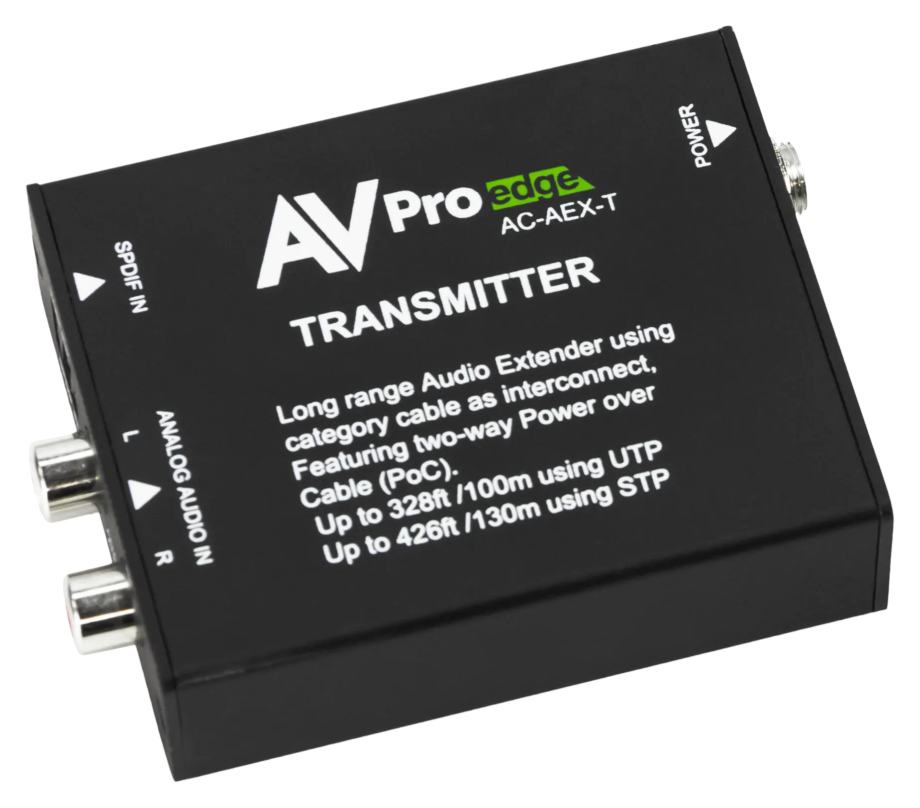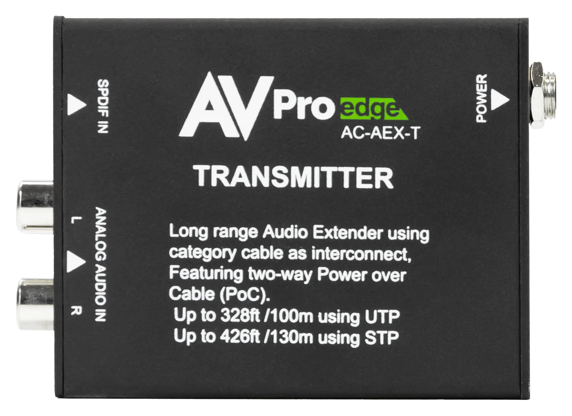 Der AVPro Edge AC-AEX-T ist ein professioneller Audio-Transmitter, der es Installateuren ermöglicht, unkomprimierte Audiosignale über Entfernungen von bis zu 100 Metern zu übertragen.