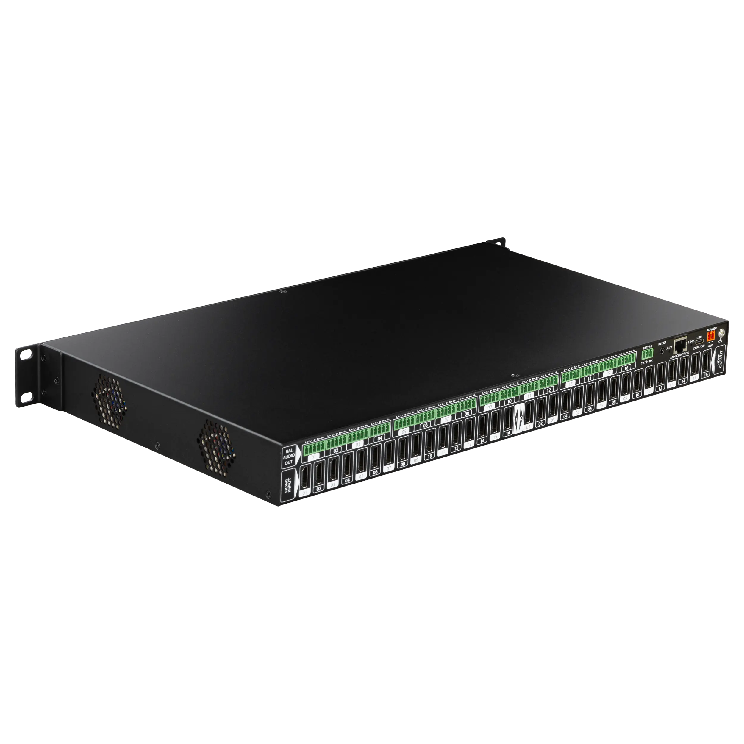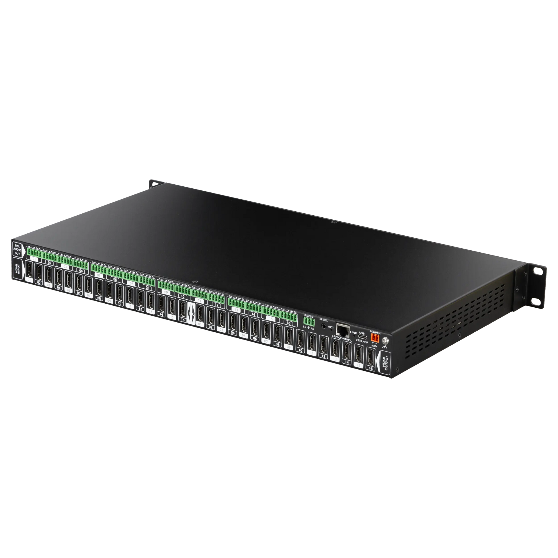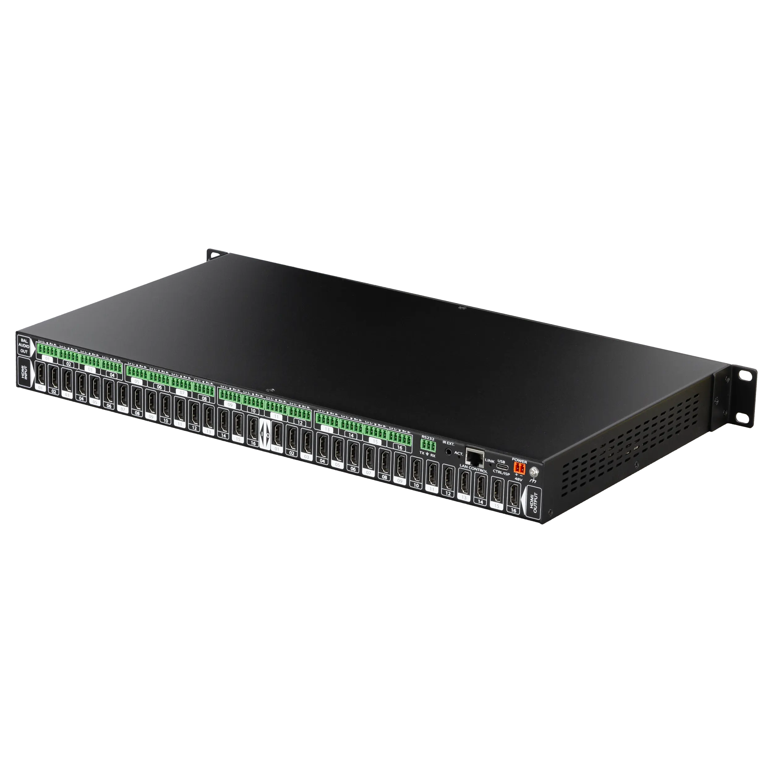 Sein kompaktes 1U-Rackdesign spart wertvollen Platz im Technikraum, während das integrierte OLED-Display an der Front eine einfache Einrichtung und Verwaltung direkt am Gerät ermöglicht – ein unverzichtbares Werkzeug für große, anspruchsvolle Installationen.