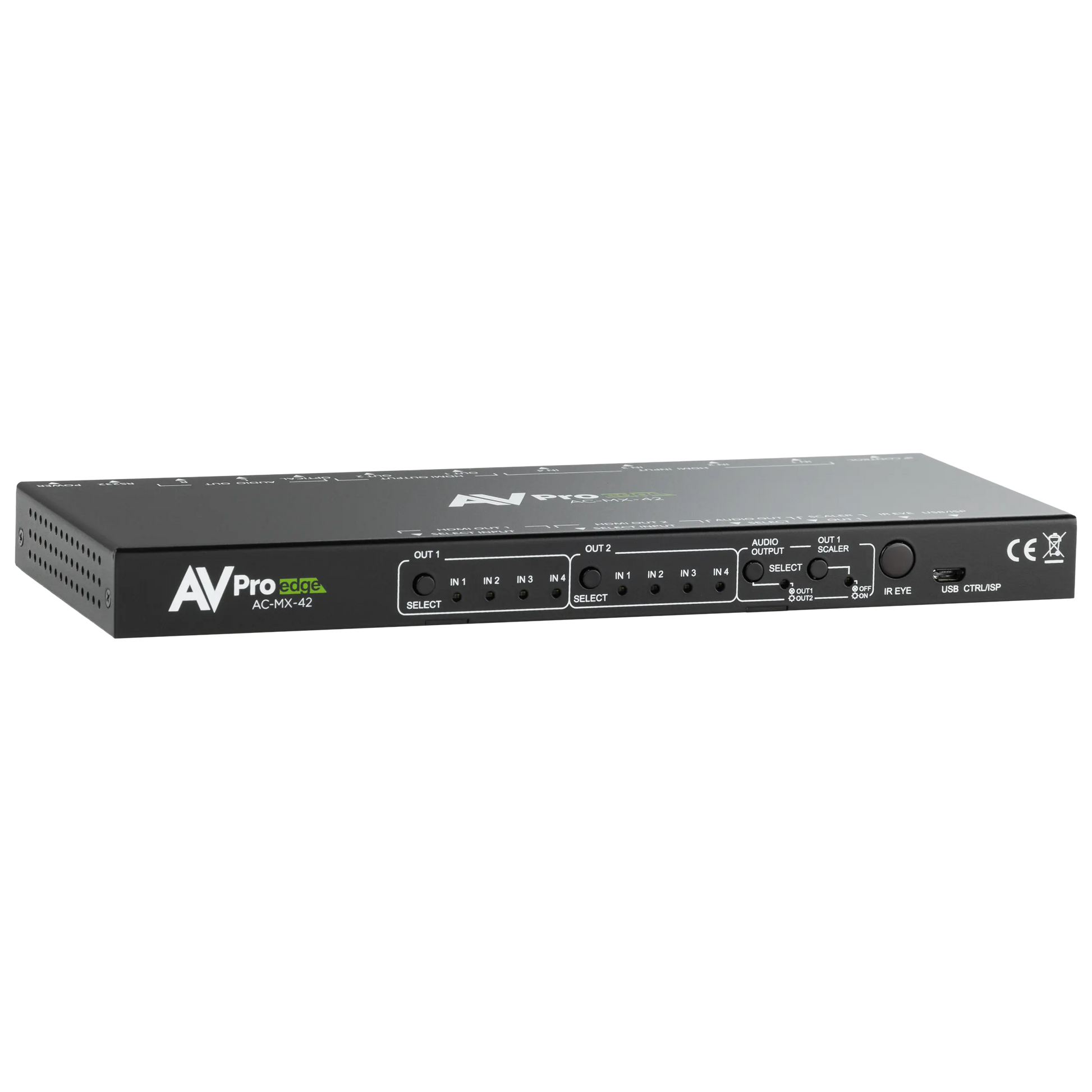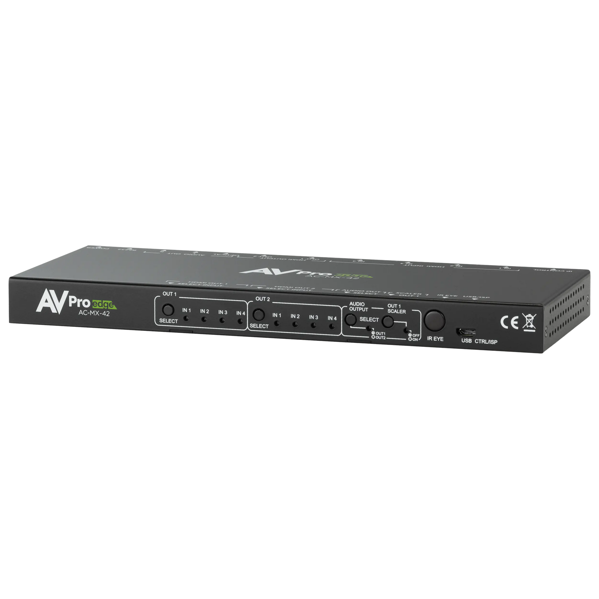 Der AVPro Edge AC-MX-42 ist ein 4x2 HDMI-Matrix-Switcher, der es ermöglicht, beliebige Quellen – etwa Blu-ray-Player, Satellitenreceiver, Spielkonsolen oder PCs – auf verbundene Displays zu schalten.