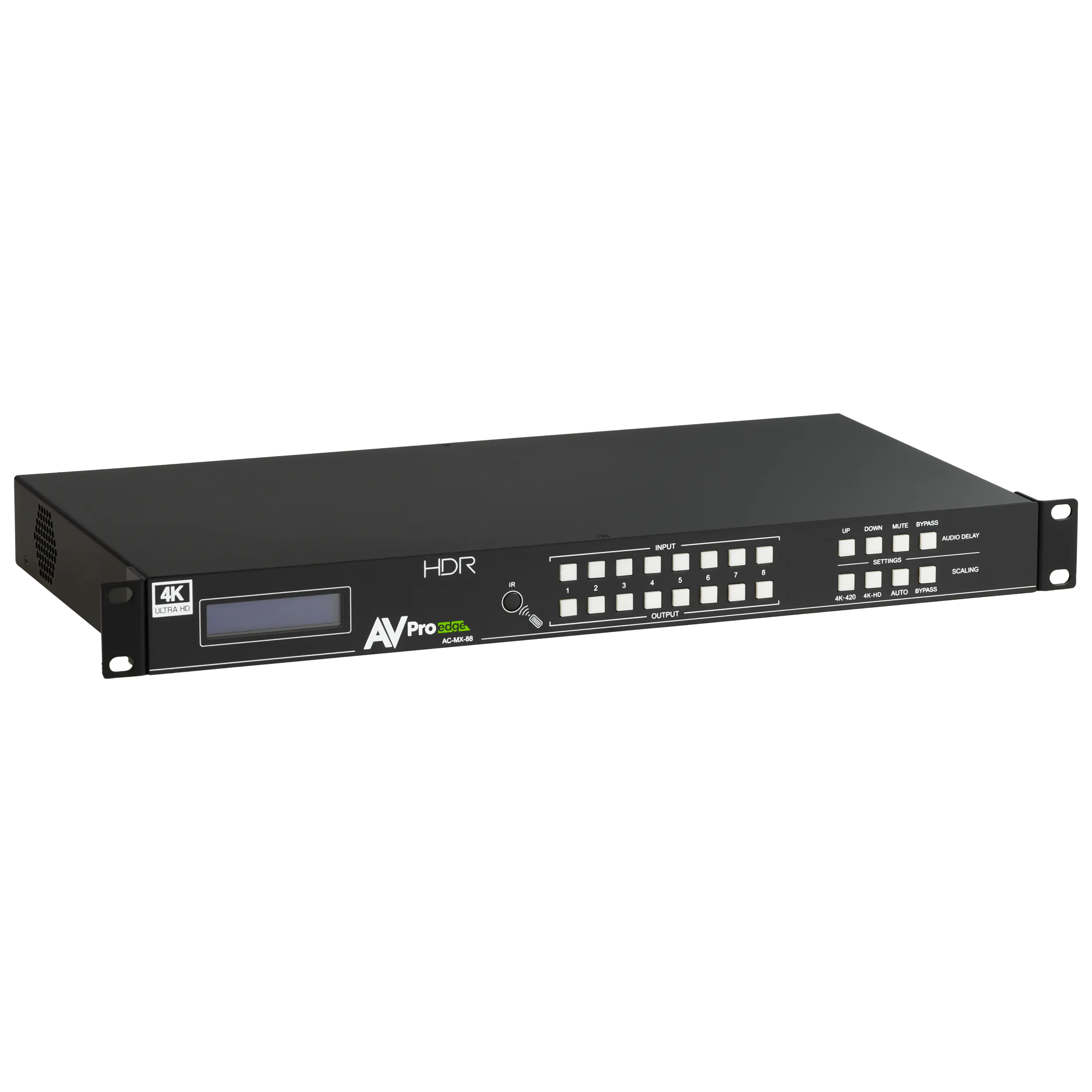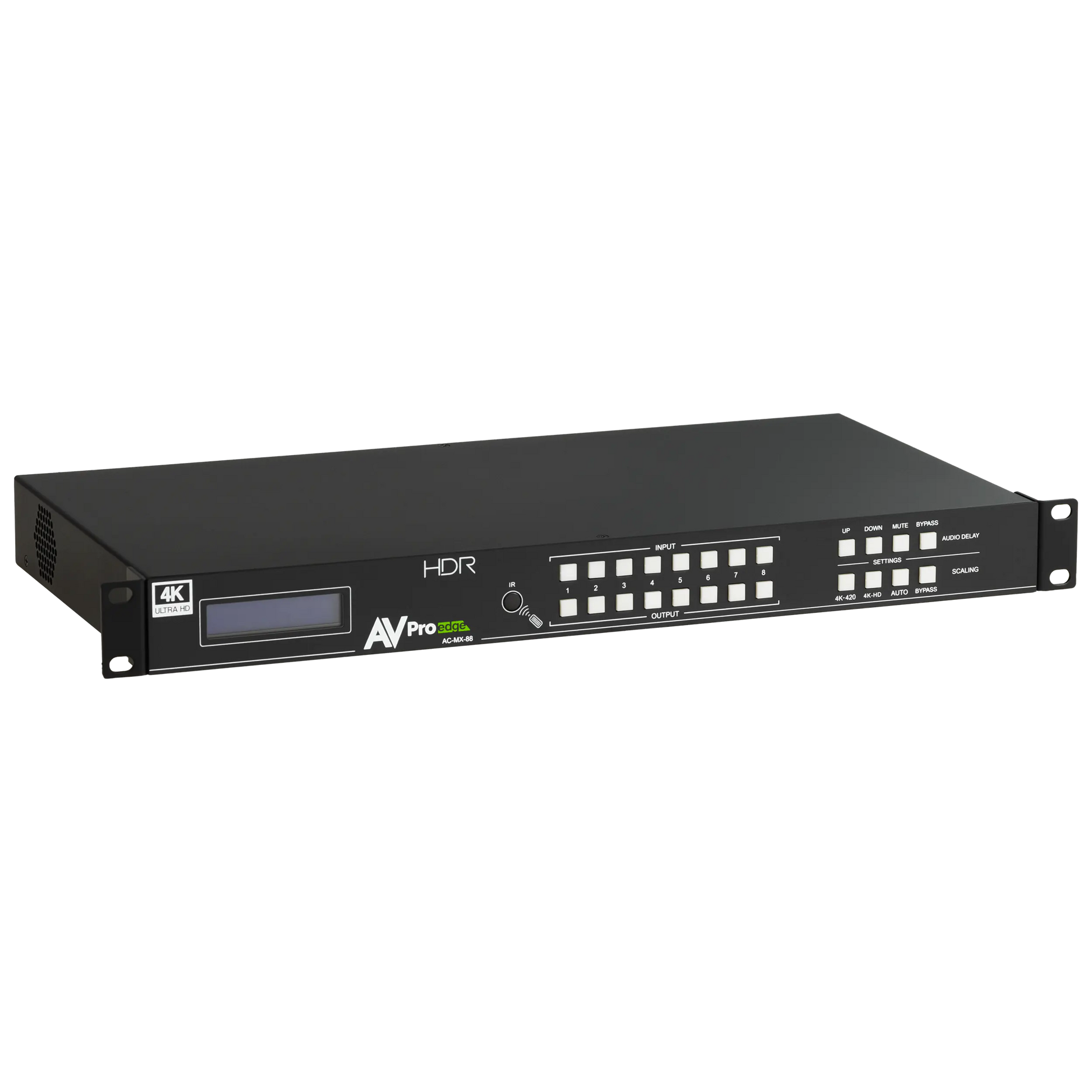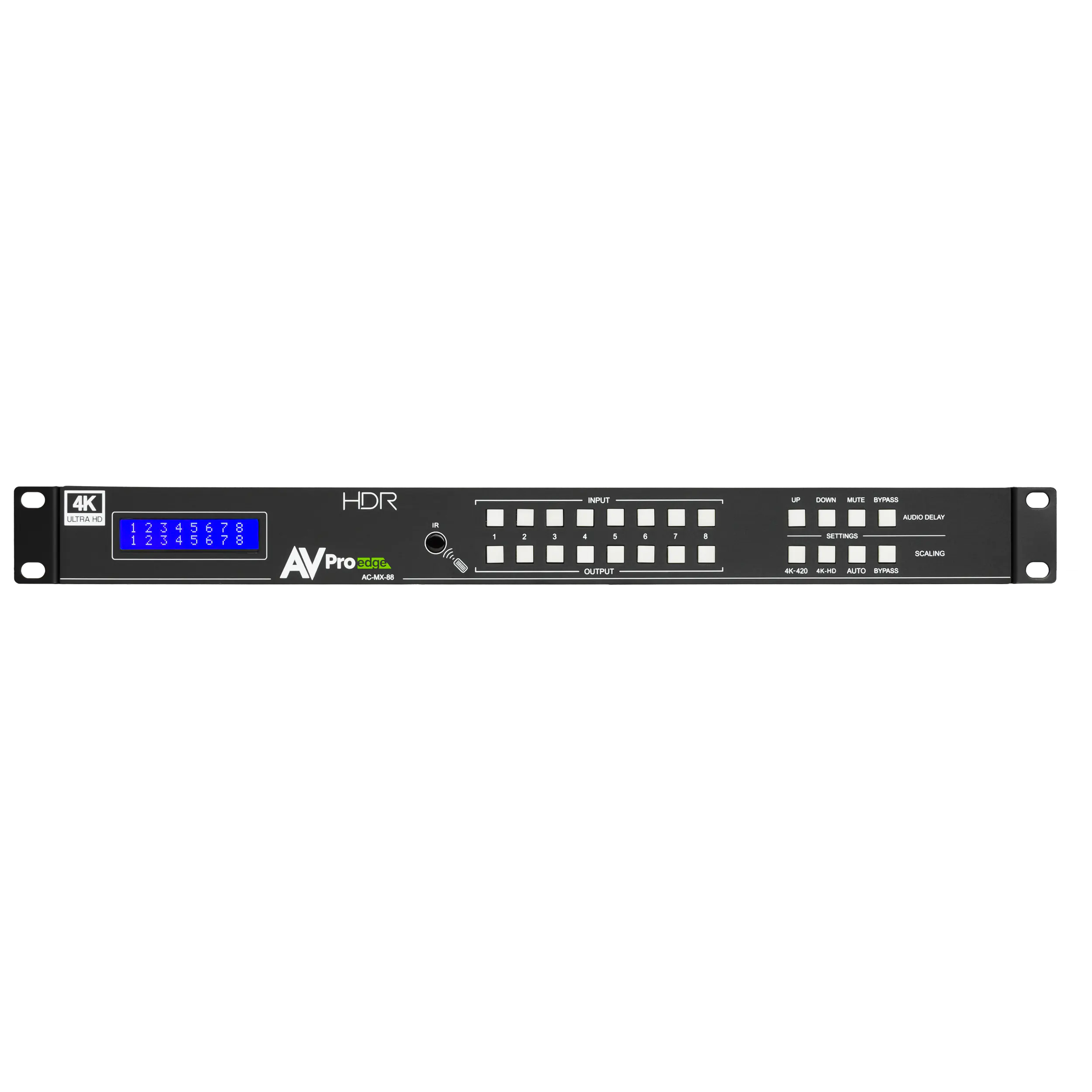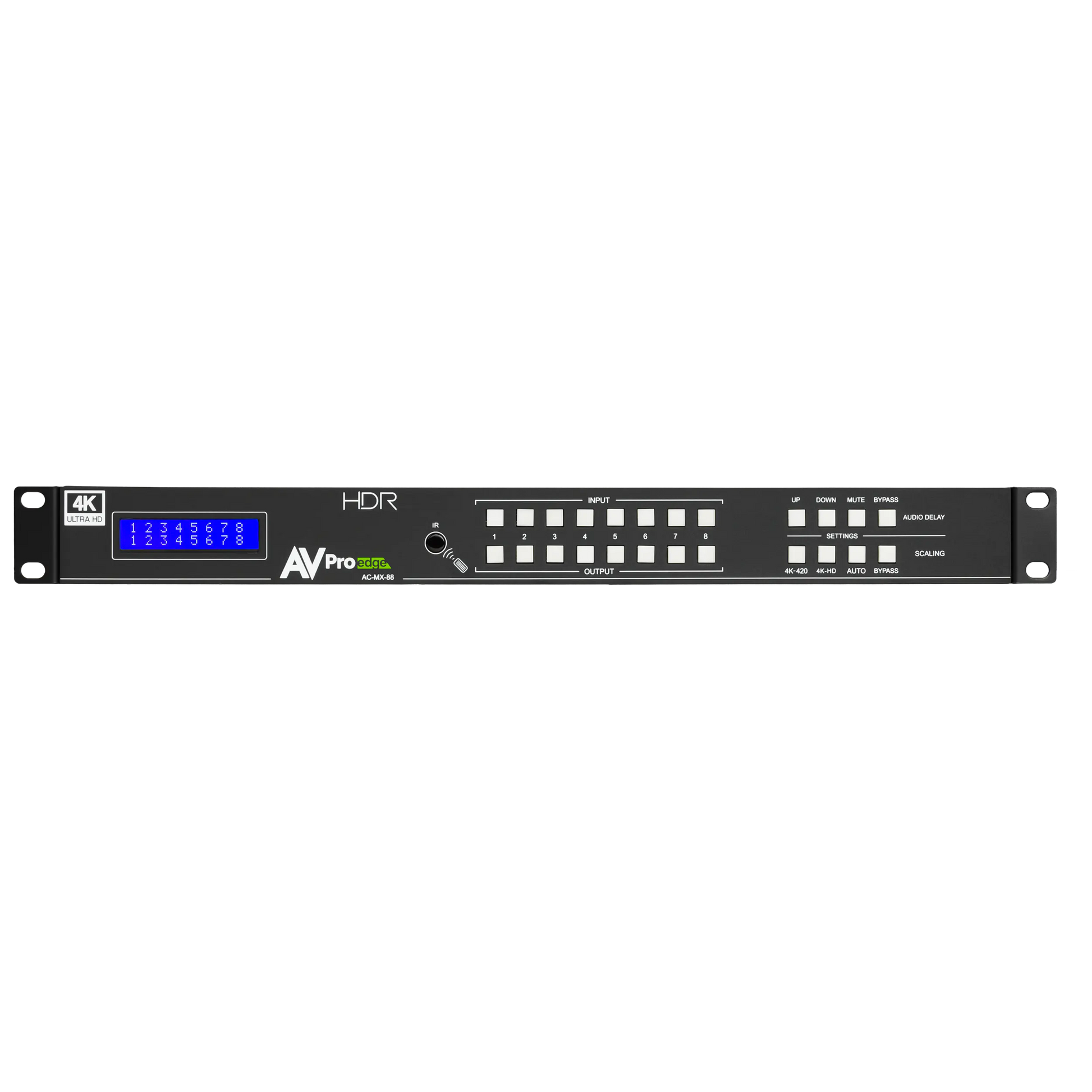 Der AVPro Edge AC-MX-88 ist ein 8x8 HDMI-Matrix-Switcher, der HDMI 2.0(a/b), HDCP 2.3, 4K-Videoauflösungen und eine Bandbreite von bis zu 18 Gbit/s unterstützt.