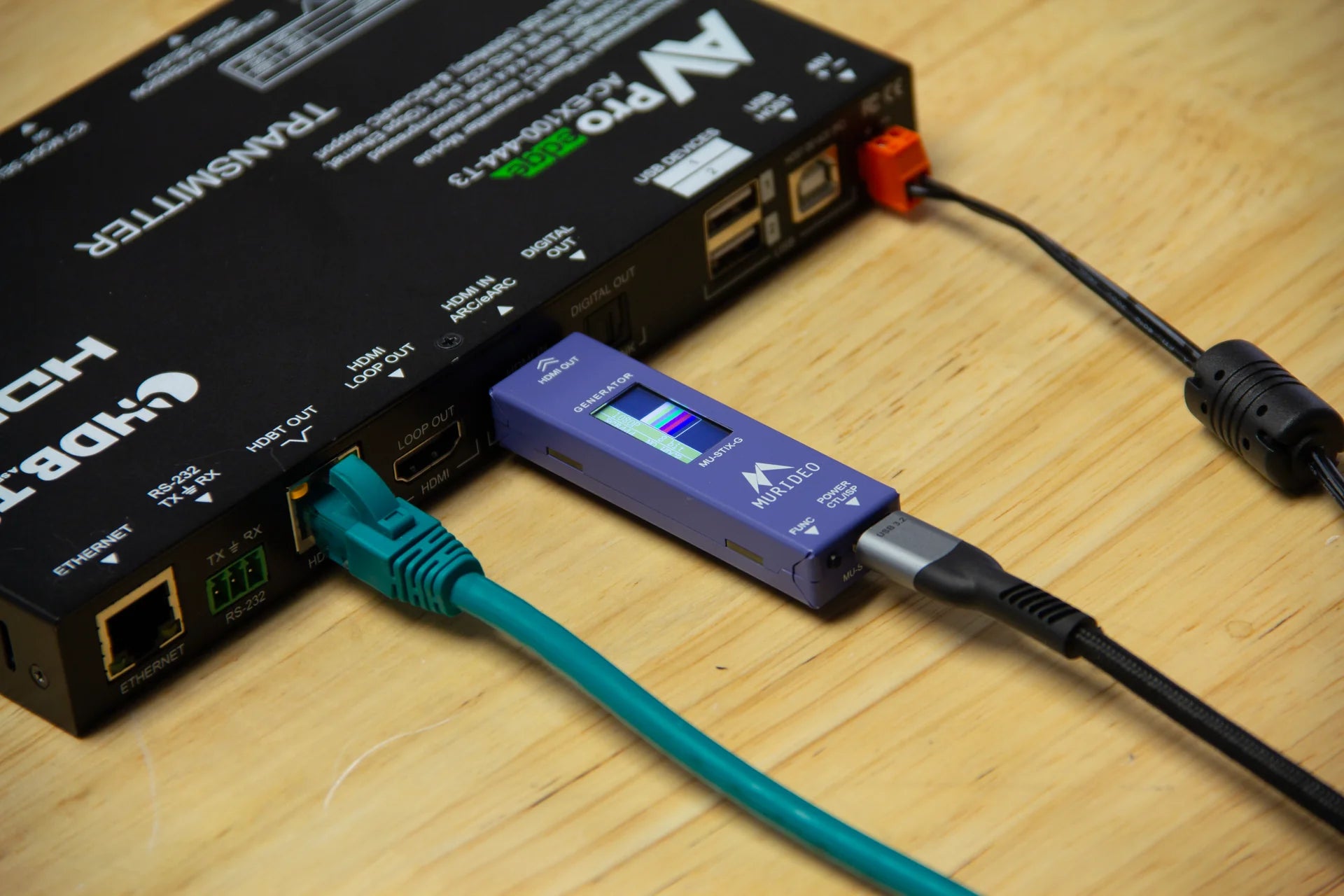 Der MU-STIX-G ist ein HDMI-Testmuster-Generator im USB-Stick-Format, entwickelt für Murideos STIX-Plattform zur großflächigen Systemevaluierung. Er eignet sich auch für einfache Vor-Ort-Tests zur Überprüfung der Signalübertragung (Pass/Fail).