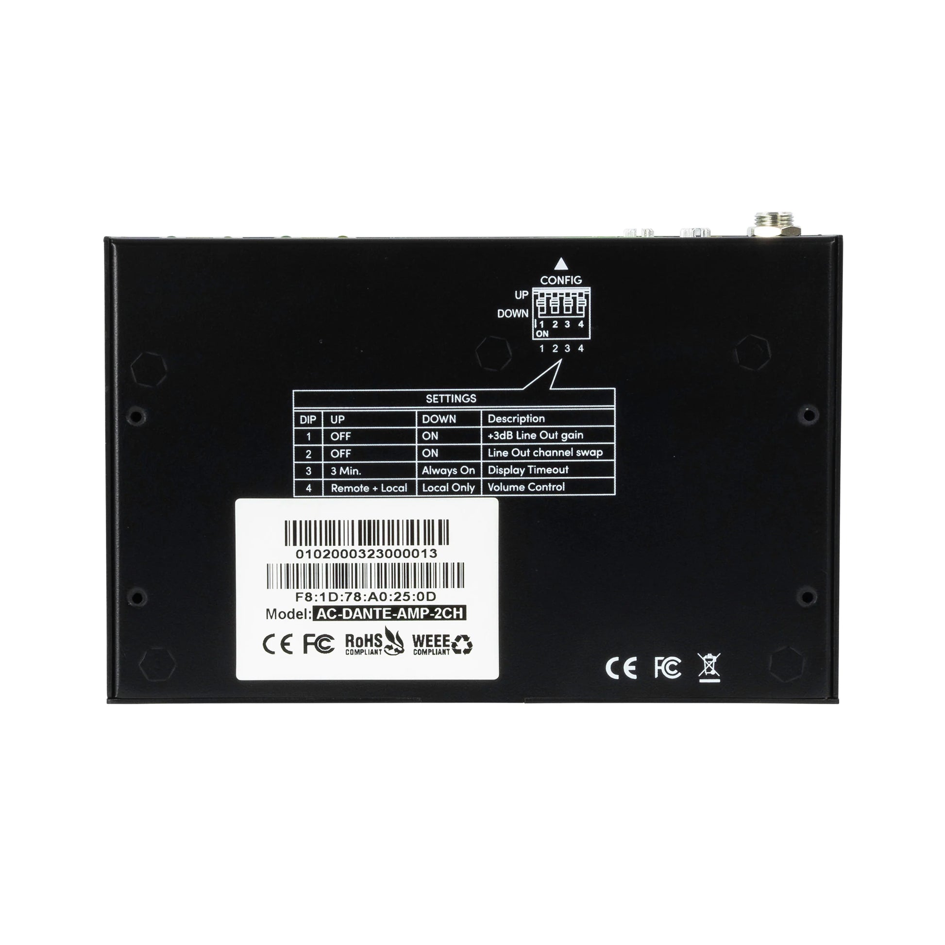 Dank des neuesten Audinate Ultimo-Chips unterstützt der AC-DANTE-AMP-2CH bis zu zwei Dante-Audiostreams mit extrem niedriger Latenz und Mikrosekunden-genauer Synchronisierung.