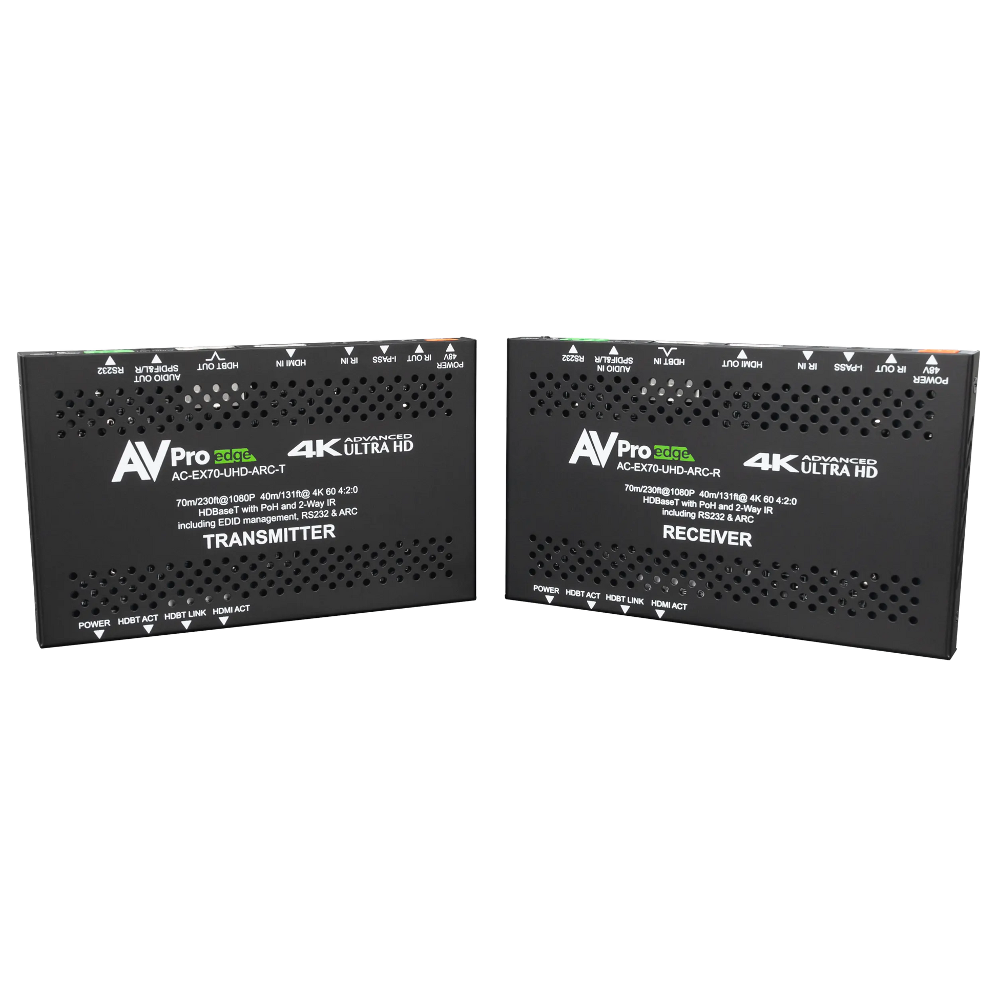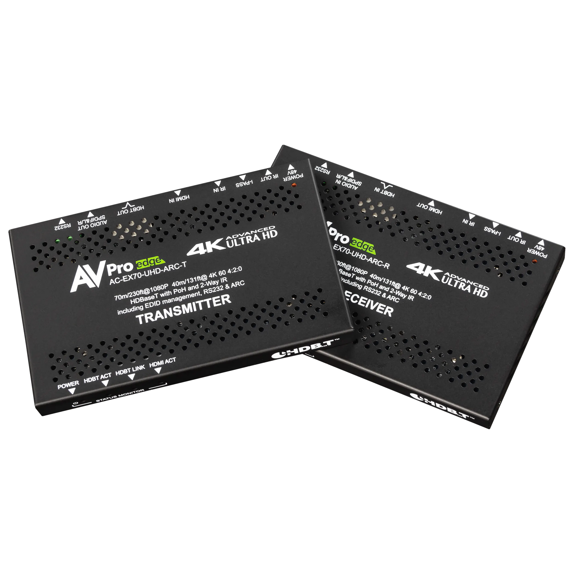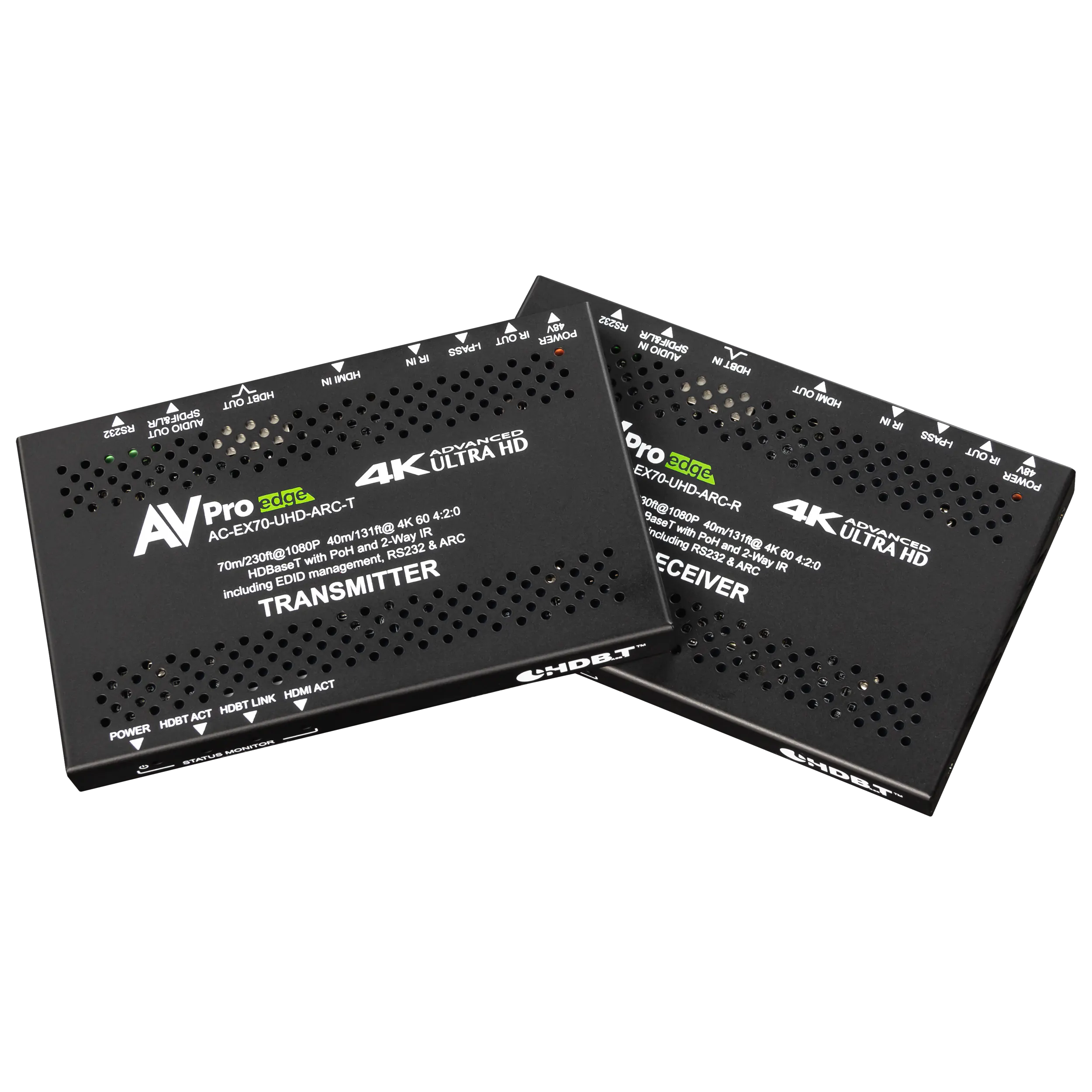 Das AC-EX70-UHD-ARC besteht aus einem Transmitter und einem Receiver, die über ein einzelnes CAT6A- oder CAT7-Kabel (UTP/STP) verbunden werden.