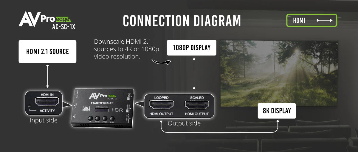 AC-SC-1X – 8K HDMI 2.1 Signalprozessor & Downscaler (40 Gbps, EDID Blend, Audio De-Embedding)