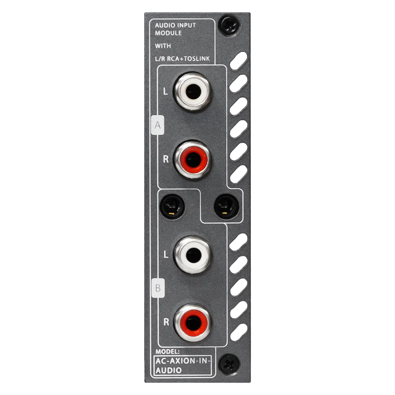 Diese Karte verfügt über zwei analoge RCA-Stereo-Eingänge und digitale Mini-TOSLINK-Eingänge. Während der Einrichtung muss für Eingang A und Eingang B jeweils ausgewählt werden, ob analog oder digital verwendet wird. Auf der Karte wandelt ein integrierter ADC-DSP-Chip das analoge Eingangssignal in ein digitales Signal um. Dieses kann dann an beliebige Ausgangskanäle des Gehäuses weitergeleitet werden. Für jeden Ausgangskanal im Gehäuse steht ein eigener DAC-DSP zur Verfügung, der das weitergeleitete Signal sowohl über den 5-poligen symmetrischen Audioanschluss als auch über den digitalen TOSLINK-Port ausgibt.