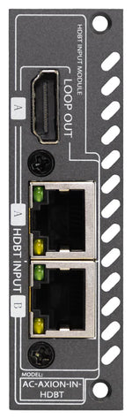 Diese Eingangskarte verfügt über zwei HDBaseT-Eingangsports mit 10,2 Gbps unkomprimierter Pass-Through-Übertragung oder 18 Gbps unter Verwendung der Invisible Compression Technology (ICT) von AVPro Edge. Eingang A ist mit einem HDMI-Loop-Out gespiegelt.