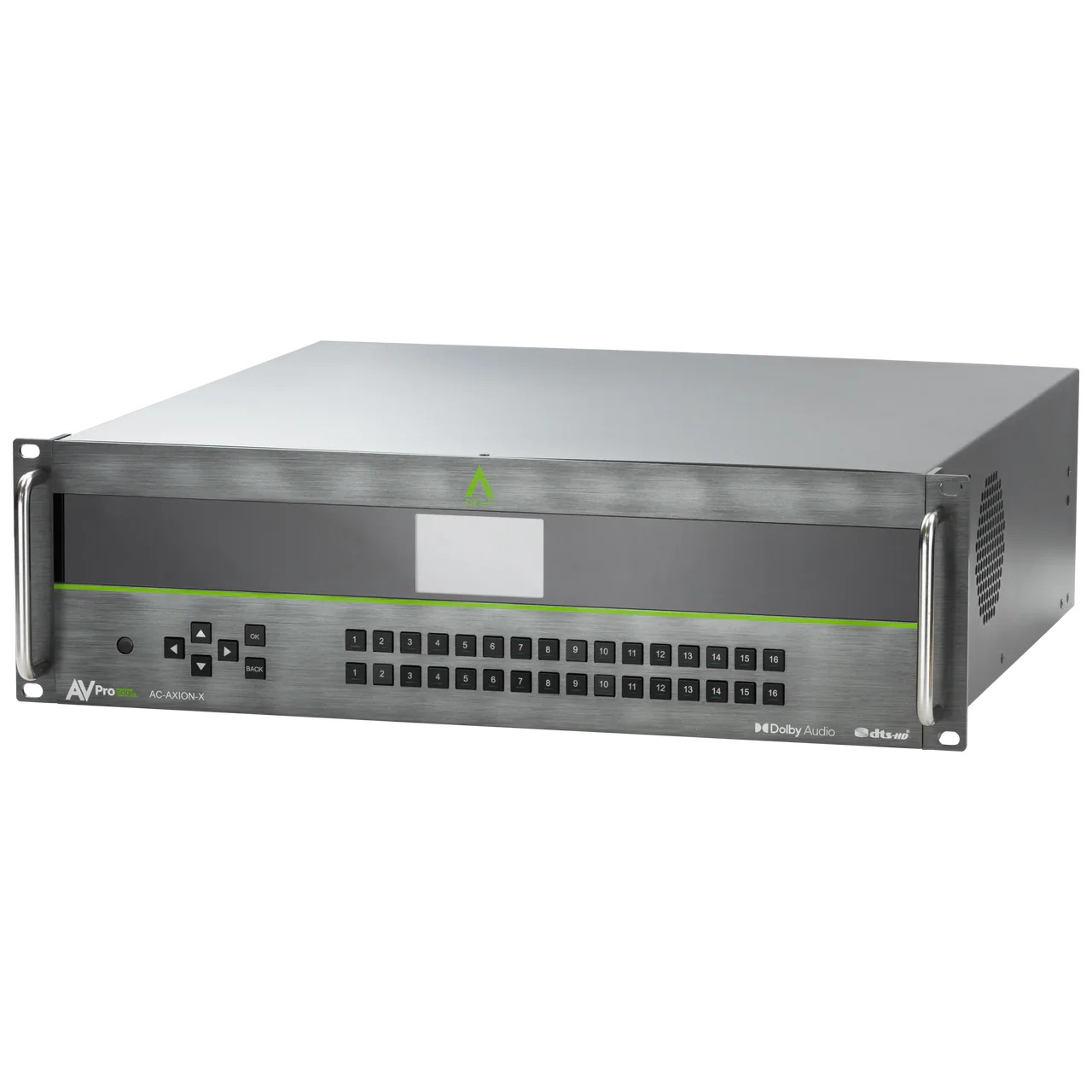 AXION X definiert die aktuelle Spitzenklasse der 4K-Matrix-Switcher von AVPro Edge. Mit einem modularen Karten-Design im Gehäuse und einer individuell konfigurierbaren Architektur mit bis zu 16 Eingängen und 16 Ausgängen ist die AXION X ein High-End-Gerät, das Ihre volle Aufmerksamkeit verdient.