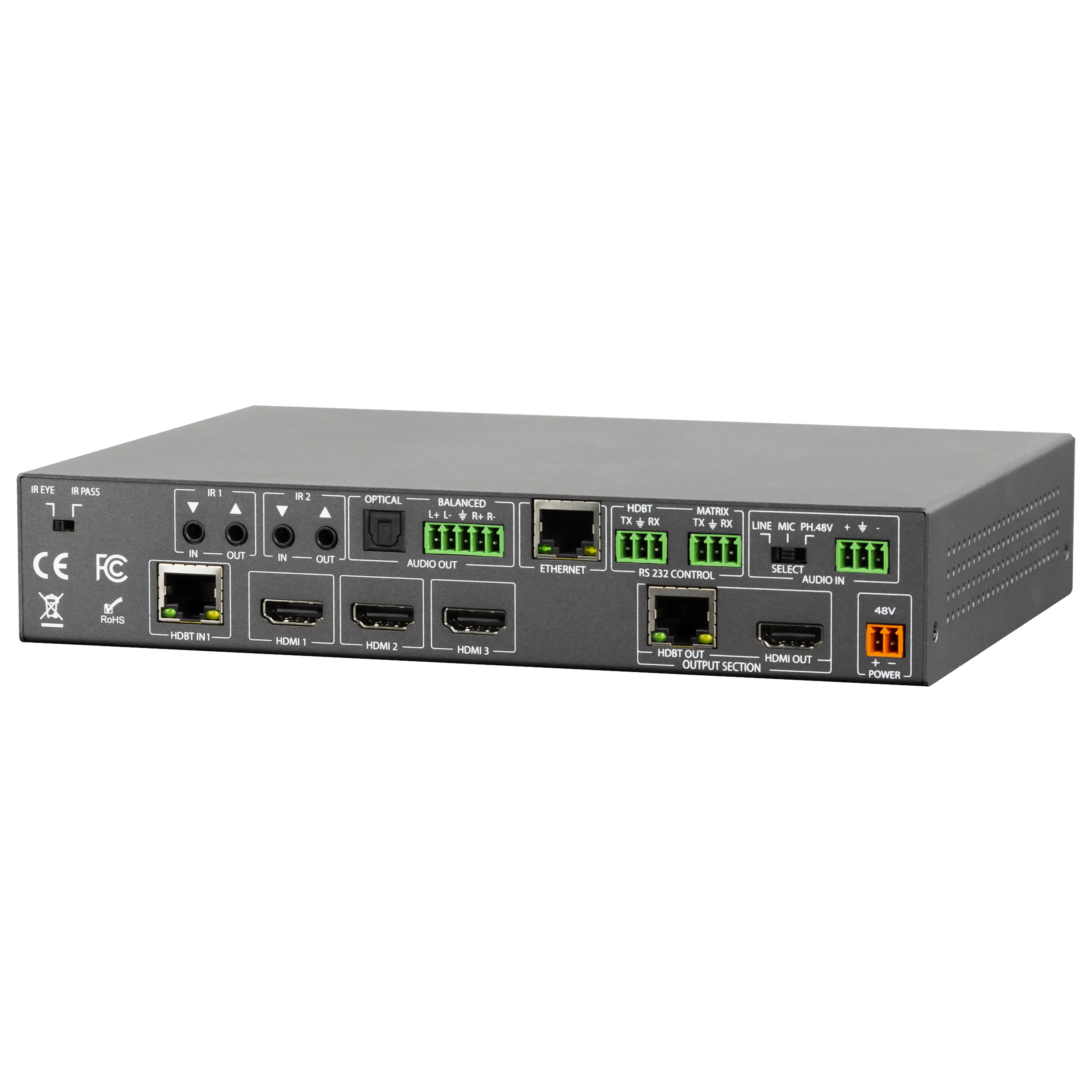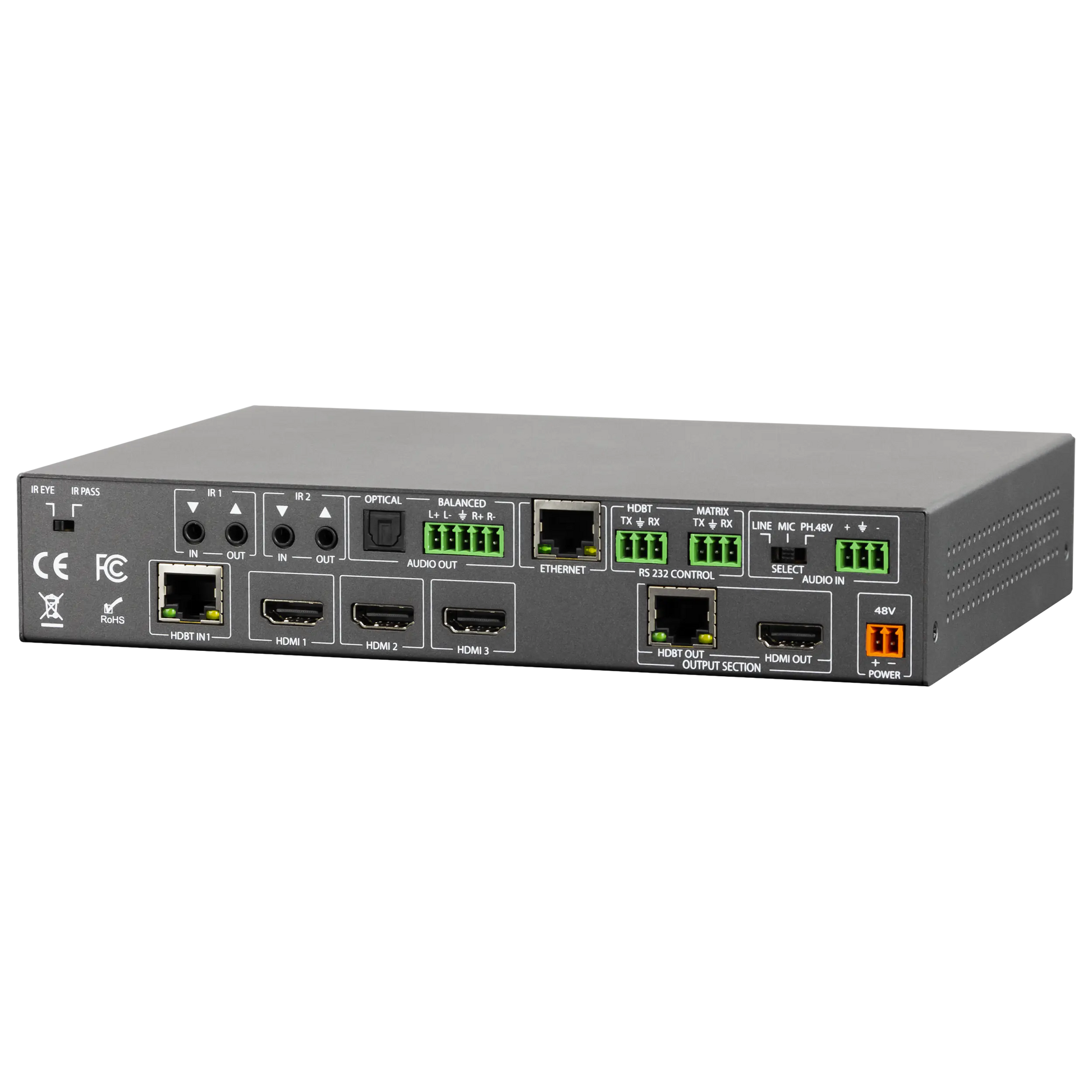 Erweitern Sie die Reichweite und Vielseitigkeit Ihres Systems mit HDBaseT. Mit einem HDBaseT-Eingang funktioniert dieser Matrix-Switcher hervorragend mit den ConferX HDBaseT-Wandplatten-Transmittern. Diese Wandplatten bieten Videoeingänge für HDMI, VGA oder USB-C und können bis zu 100 Meter entfernt vom AC-CX42-AUHD installiert werden. Der AC-CX42-AUHD bietet Endanwendern eine einfache Bedienung und die notwendigen Eingänge, um ihre Inhalte auch über große Distanzen zu teilen.