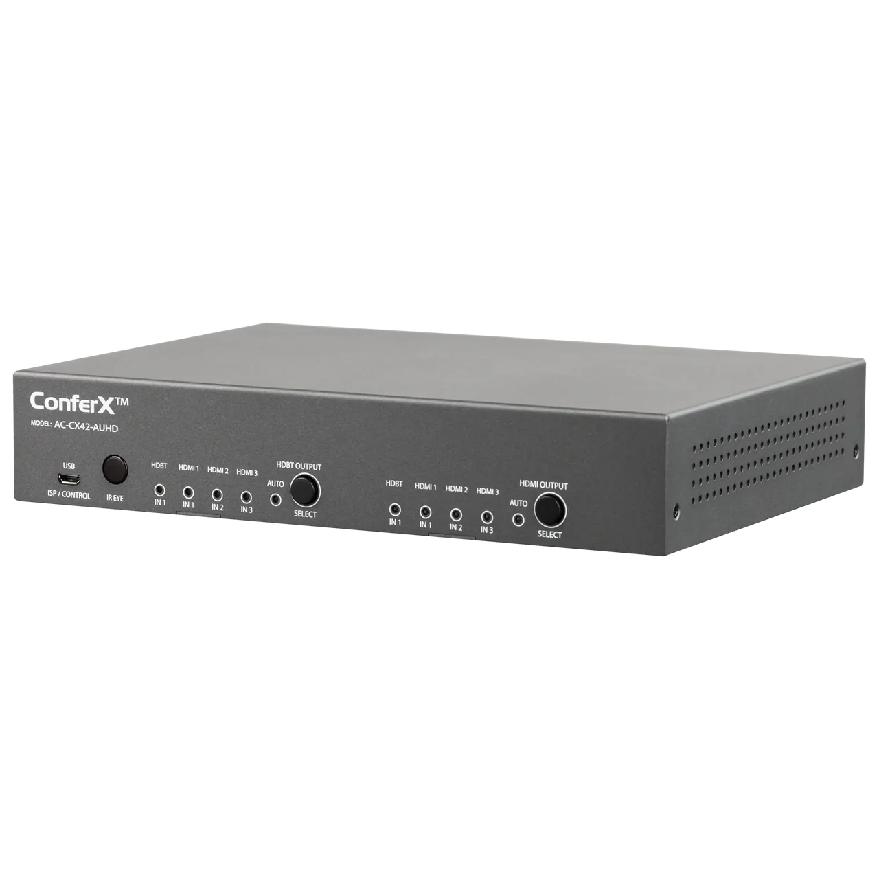 Die ConferX 4x2 Matrix ist die ideale Lösung für Konferenzräume, Klassenzimmer oder kleine Besprechungsbereiche. Dieser 4K-Switcher kann vier verschiedene Quellen über die HDBaseT- und HDMI-Ausgänge anzeigen. Jeder dieser Ausgänge ist vollständig unabhängig, sodass zwei Quellen gleichzeitig dargestellt werden können. Dank zusätzlicher Audio-Ein- und Ausgänge ist auch die Integration von Mikrofonen oder Gegensprechanlagen problemlos möglich. Wenn Sie eine stabile Lösung für die Videoverteilung benötigen, ist die gesamte ConferX-Produktlinie eine ausgezeichnete Wahl.