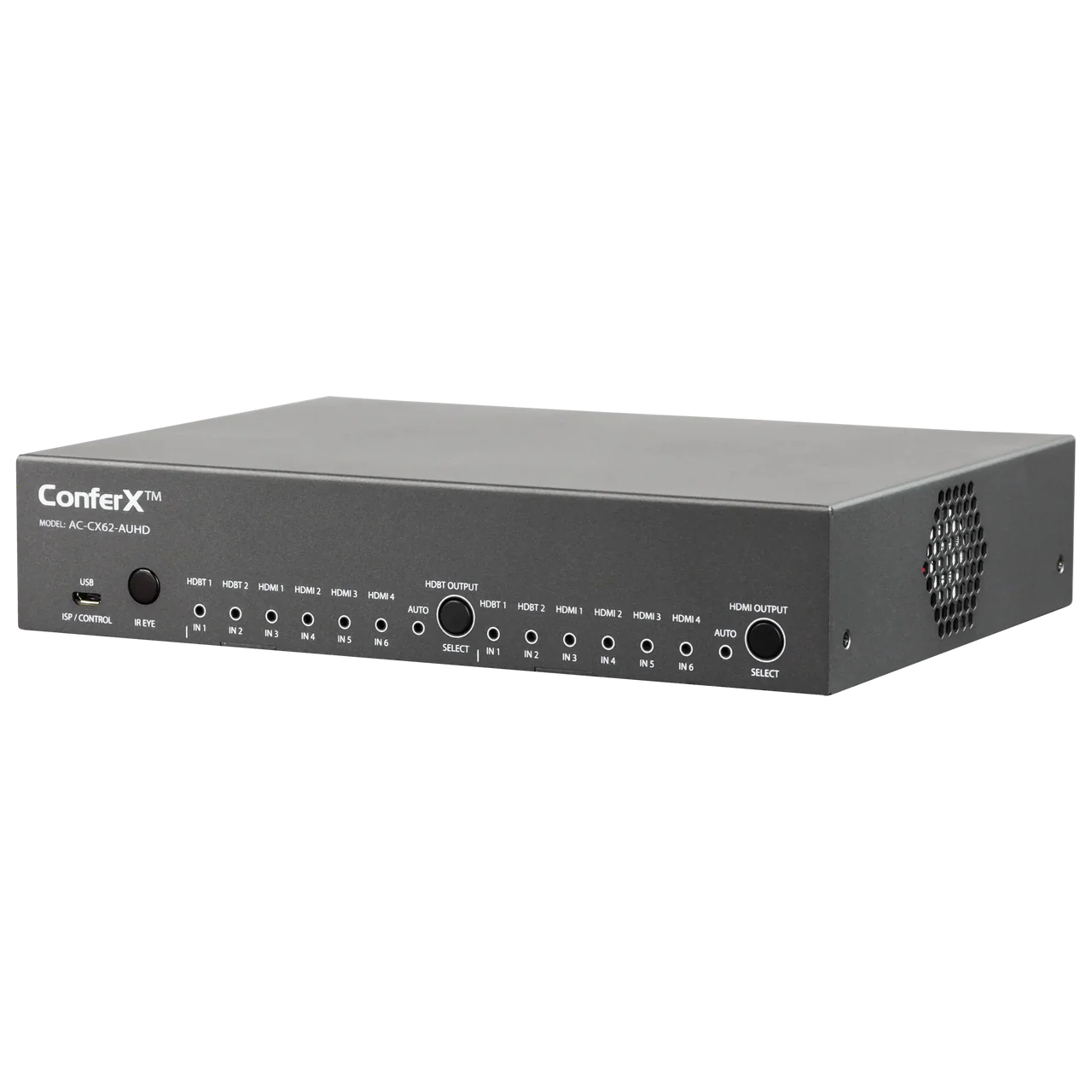 Die ConferX 6x2 Matrix ist die ideale Lösung für Konferenzräume, Klassenzimmer oder kleine Besprechungsbereiche. Dieser 4K-Switcher kann sechs verschiedene Quellen über die HDBaseT- und HDMI-Ausgänge anzeigen. Jeder dieser Ausgänge ist vollständig unabhängig, sodass zwei Quellen gleichzeitig dargestellt werden können. Dank zusätzlicher Audio-Ein- und Ausgänge ist auch die Integration von Mikrofonen oder Gegensprechanlagen problemlos möglich. Wenn Sie eine stabile Lösung für die Videoverteilung benötigen, ist die gesamte ConferX-Produktlinie eine ausgezeichnete Wahl.