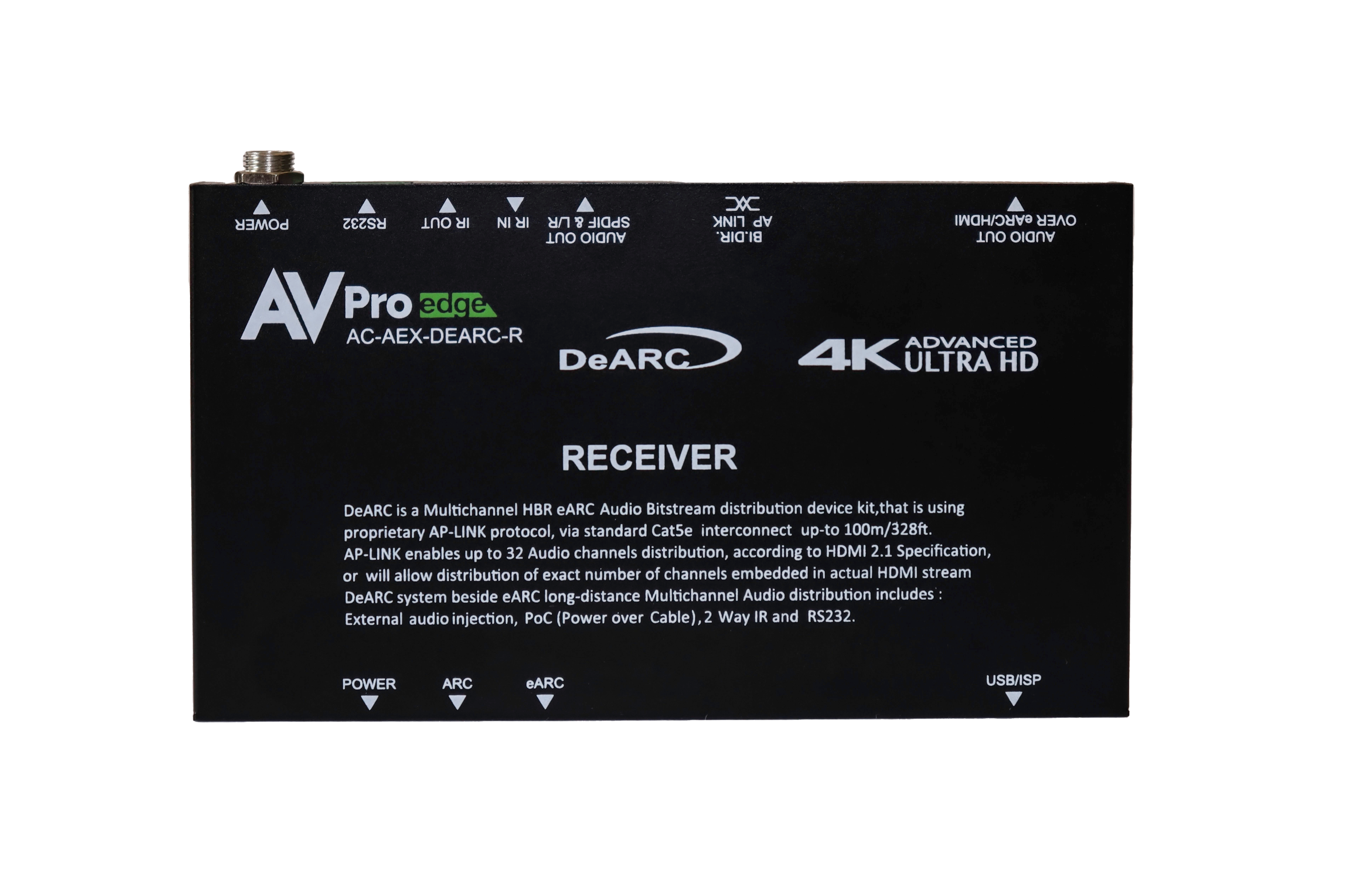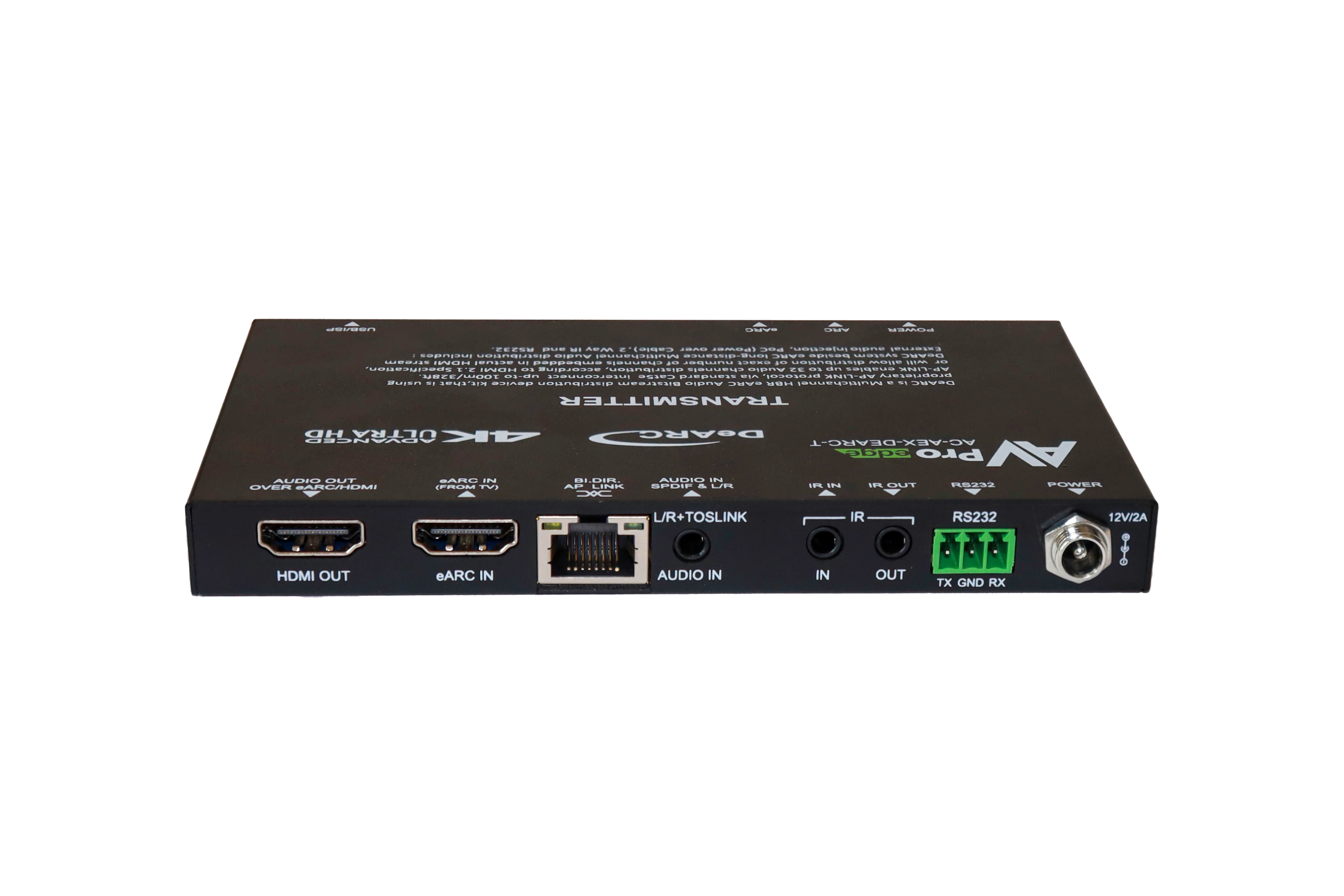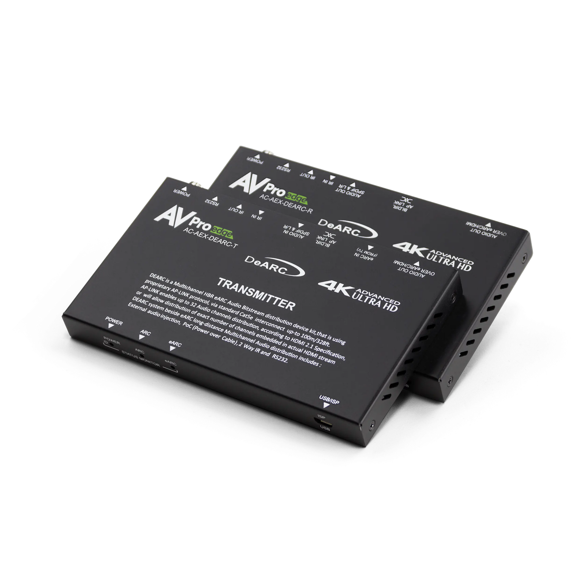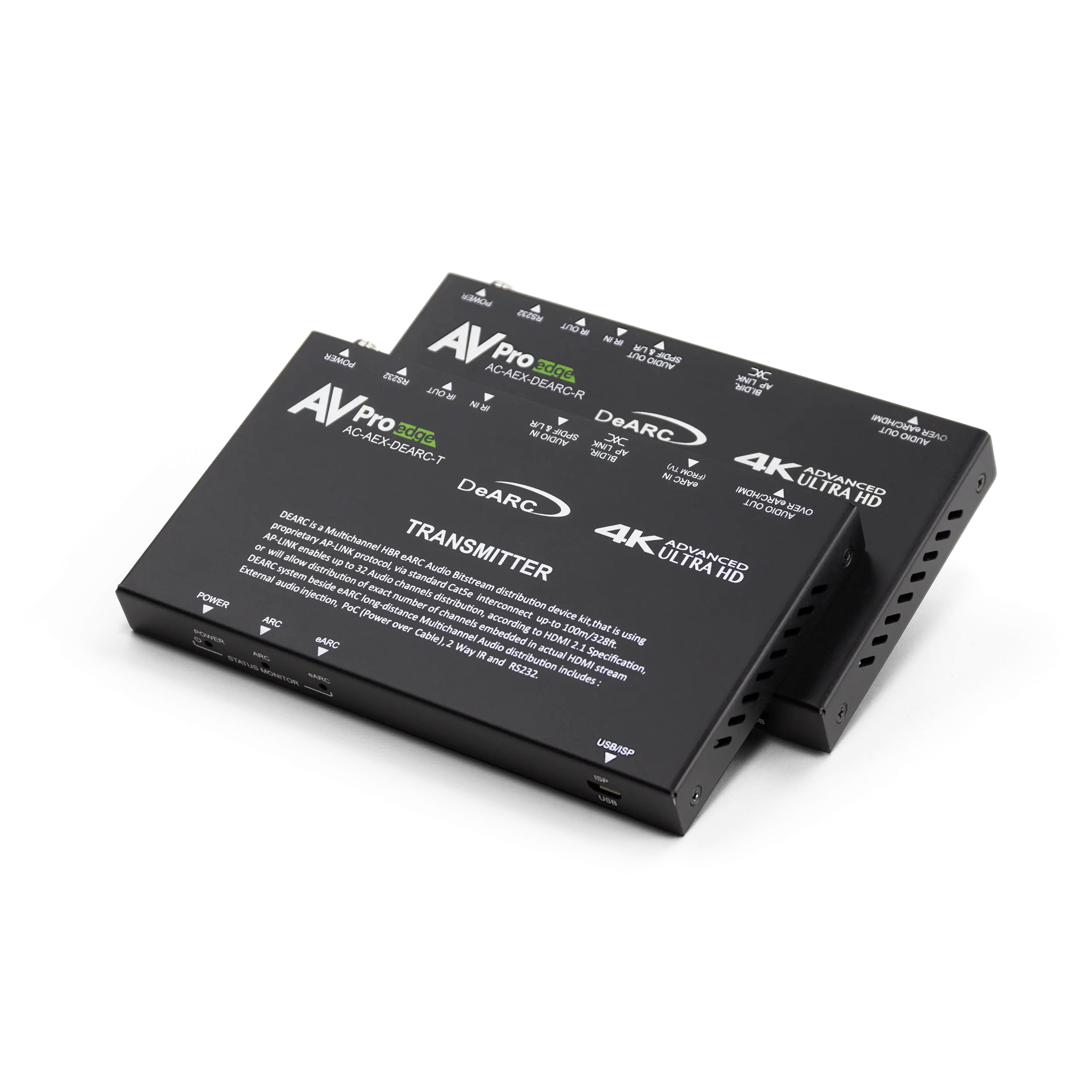 Das AVPro Edge AC-AEX-DEARC-KIT ist ein Transmitter-Receiver-Duo, das speziell für die Übertragung von Audio-Codecs (reines Audiosignal, keine Videodaten) von einem Fernseher zu einem zentralen System- oder Verteilungsstandort entwickelt wurde.