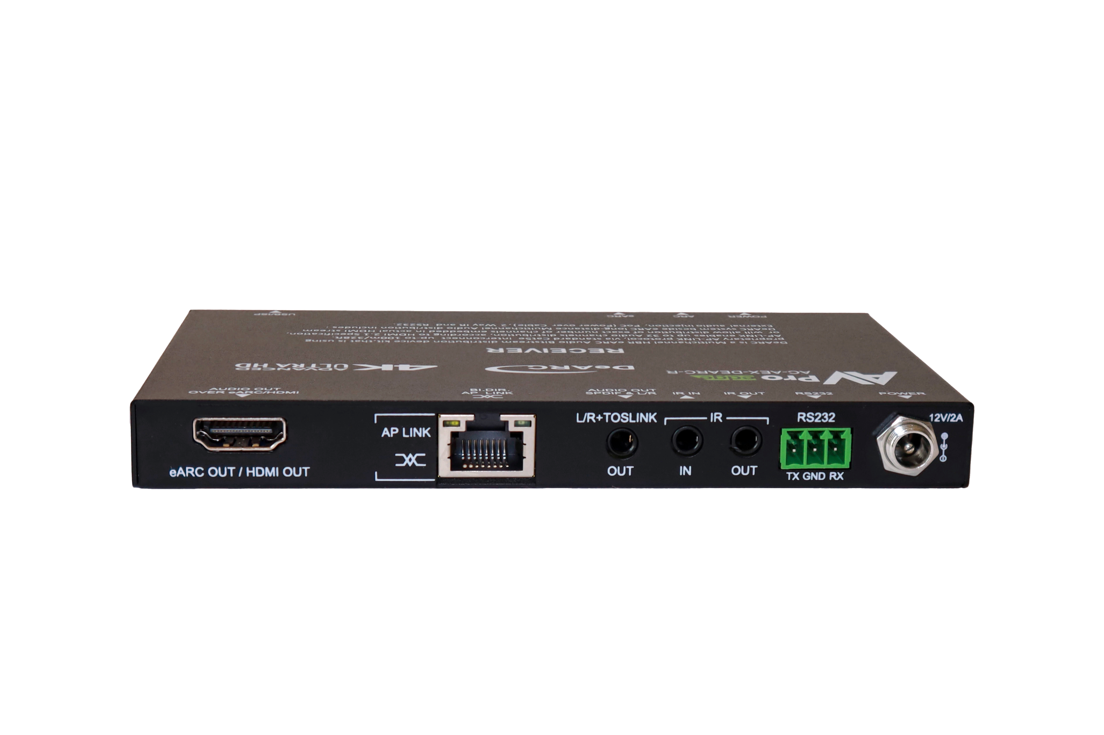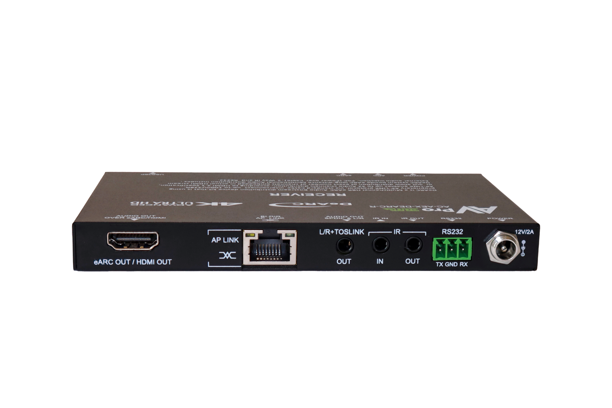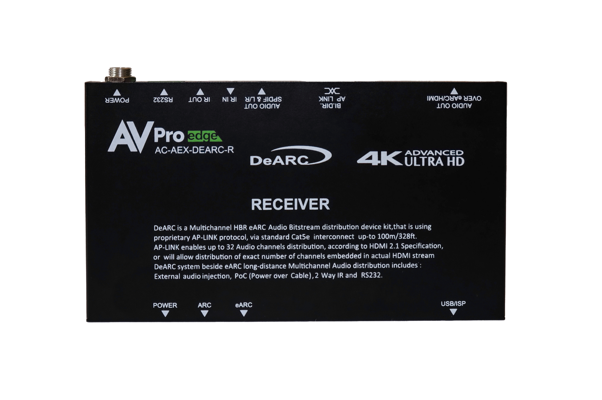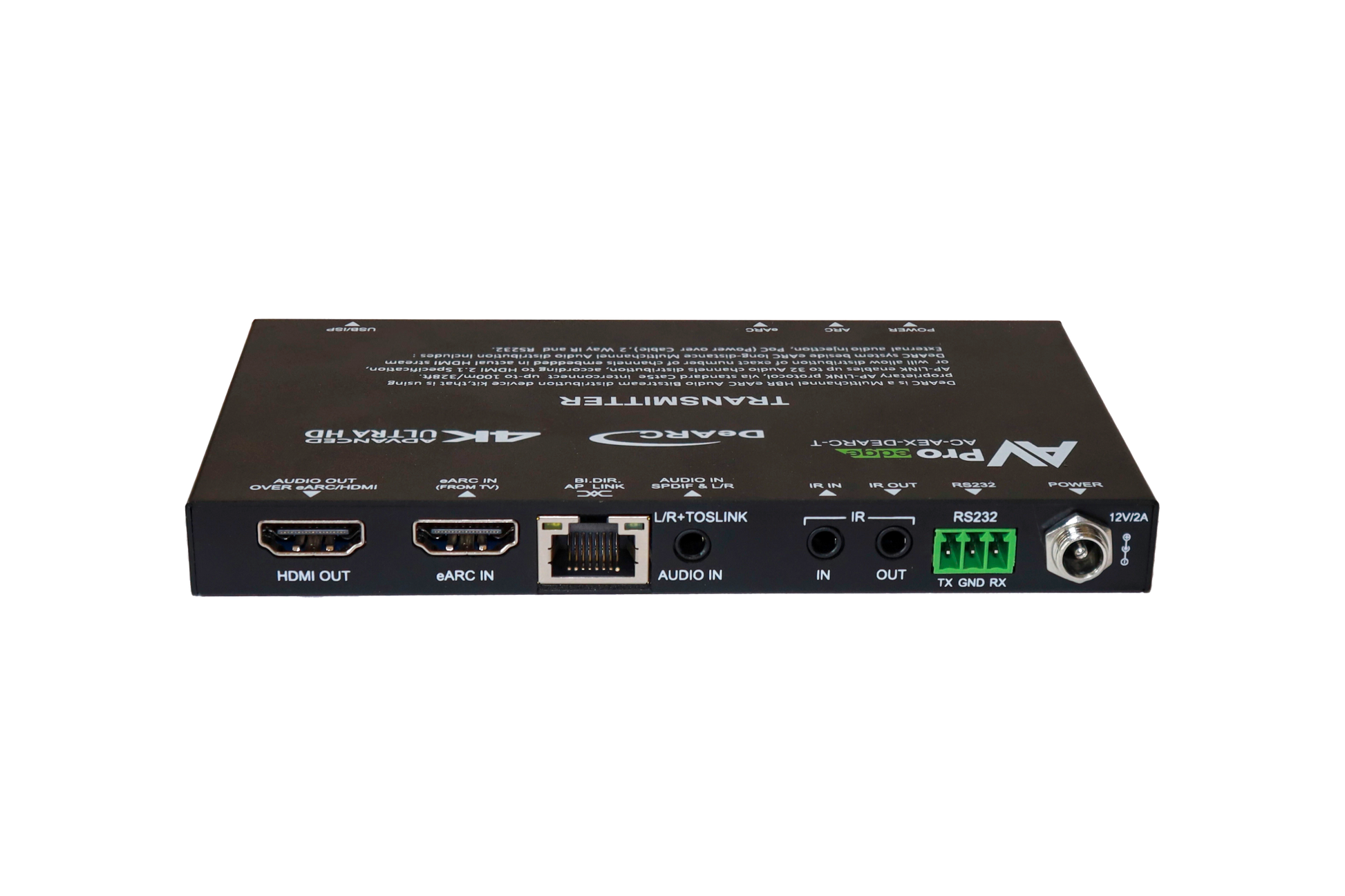 Das AVPro Edge AC-AEX-DEARC-KIT ist ein Transmitter-Receiver-Duo, das speziell für die Übertragung von Audio-Codecs (reines Audiosignal, keine Videodaten) von einem Fernseher zu einem zentralen System- oder Verteilungsstandort entwickelt wurde.