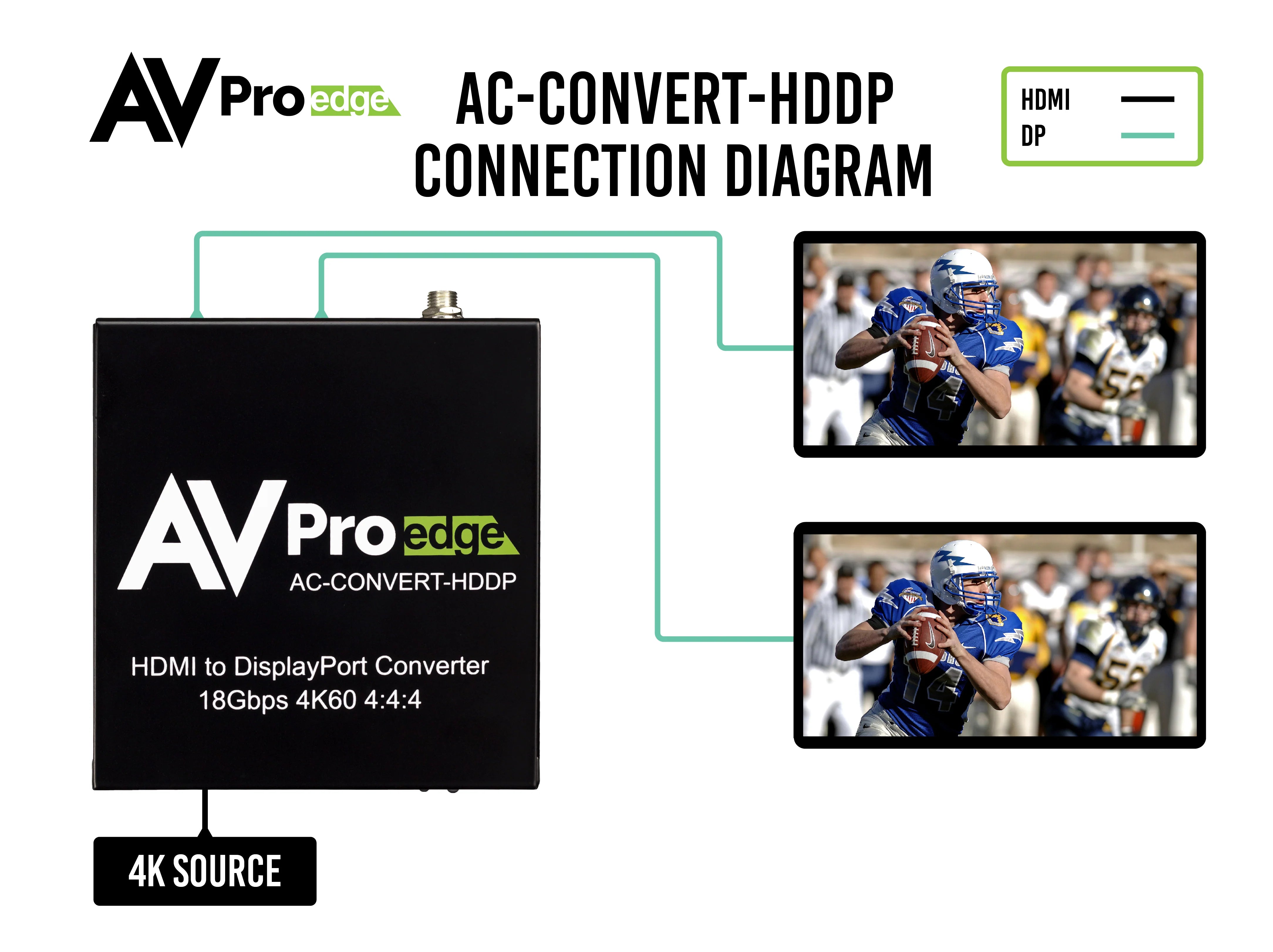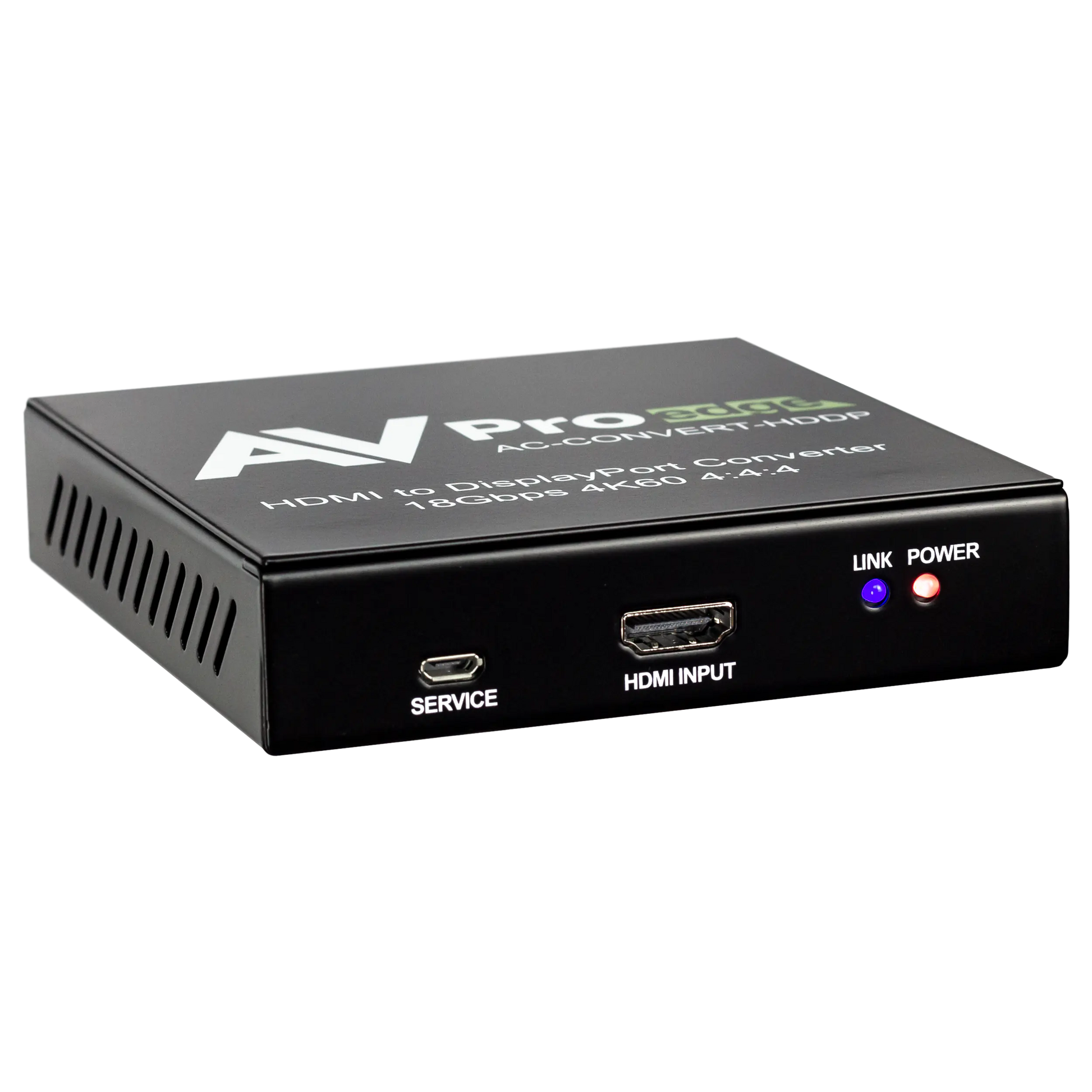 Der AVPro Edge AC-CONVERT-HDDP ist ein HDMI-zu-DisplayPort-Konverter, der 4K60 (4:4:4)-Signale mit voller 18 Gbit/s Bandbreite in DisplayPort 1.2a umwandelt – ohne Qualitätsverlust.
