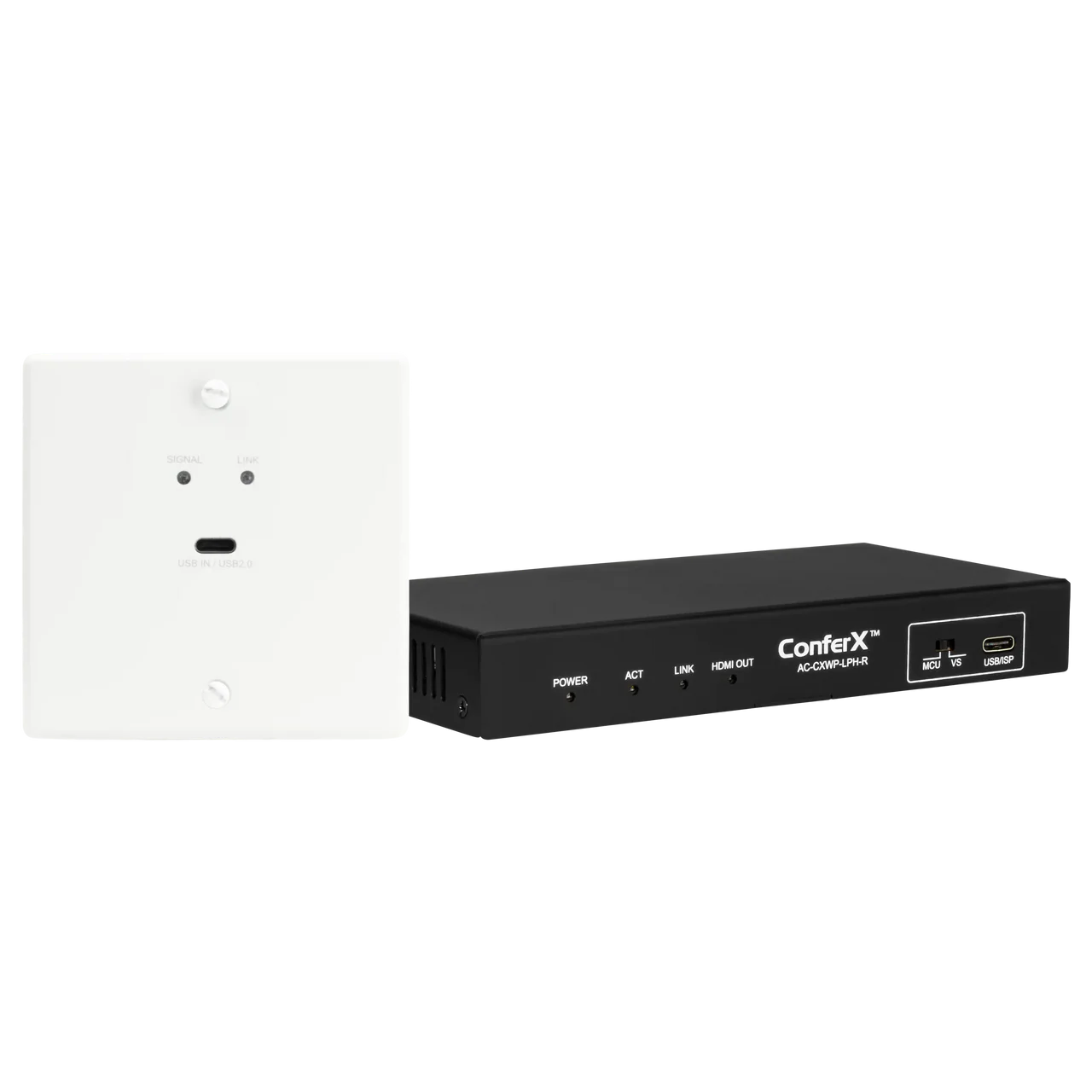Die AC-CXWP-LPU-EU-Serie aus der ConferX-Produktlinie von AVPro Edge ist ein niedrigprofiliges Wandanschlussfeld mit einem USB-Typ-C-Eingang und HDBaseT-Signalübertragung, das für eine einfache und zuverlässige Installation in eine Standard-Unterputzdose (Einzelrahmen) entwickelt wurde.