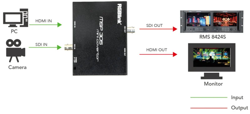 Für professionelle Anwender bedeutet dies eine vereinfachte Konvertierung von HDMI-Signalen (inklusive Audio) in SDI-Signale zur Langstreckenübertragung und präzisen Darstellung auf SDI-Monitoren.