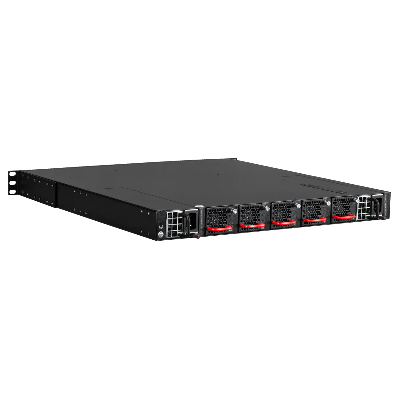 - Ausfallsichere Konstruktion – Zwei interne Netzteile sorgen für redundante Absicherung im unwahrscheinlichen Fall eines Ausfalls. Zusätzlich gewährleisten 4+1 redundante Lüftermodule einen kühlen und langlebigen Betrieb.