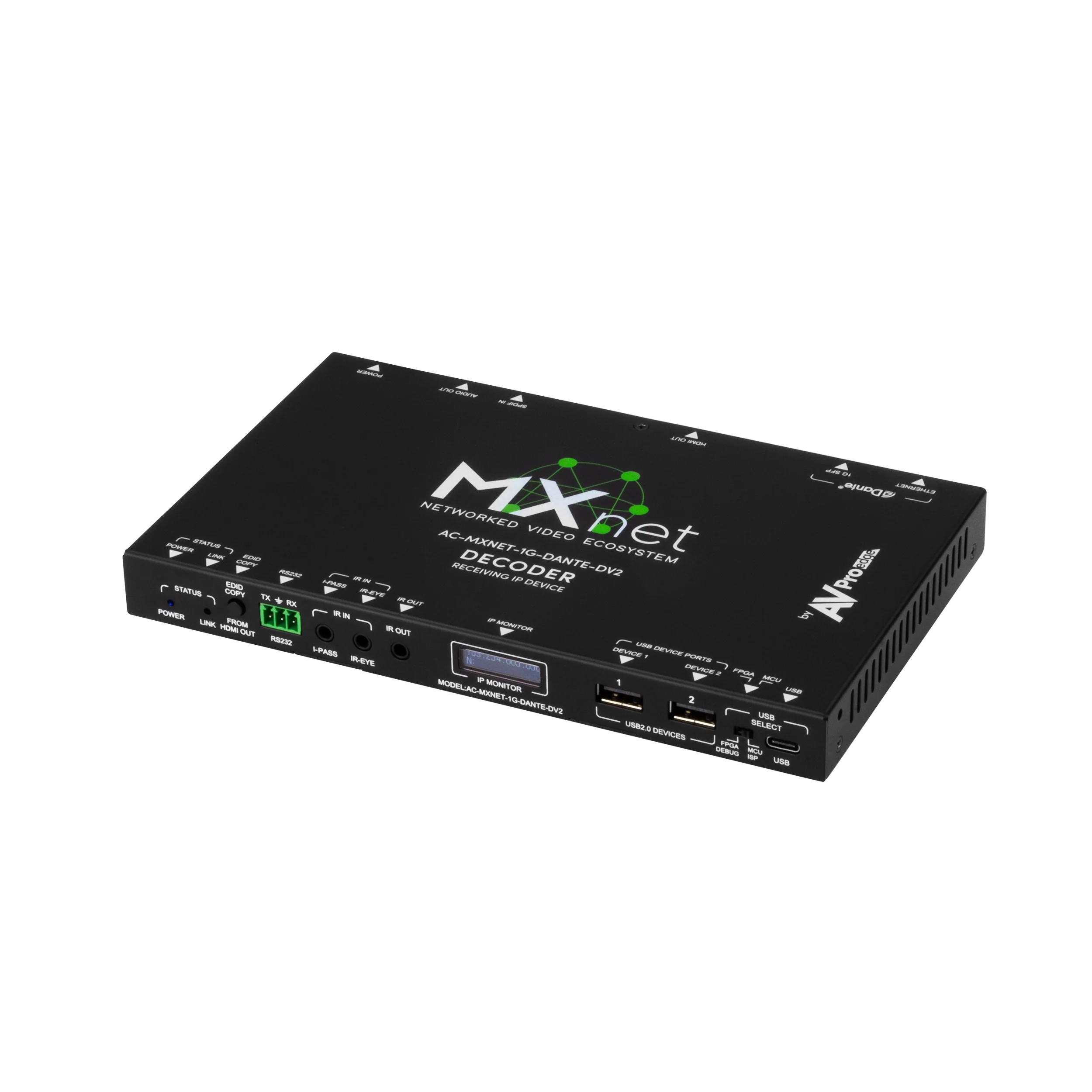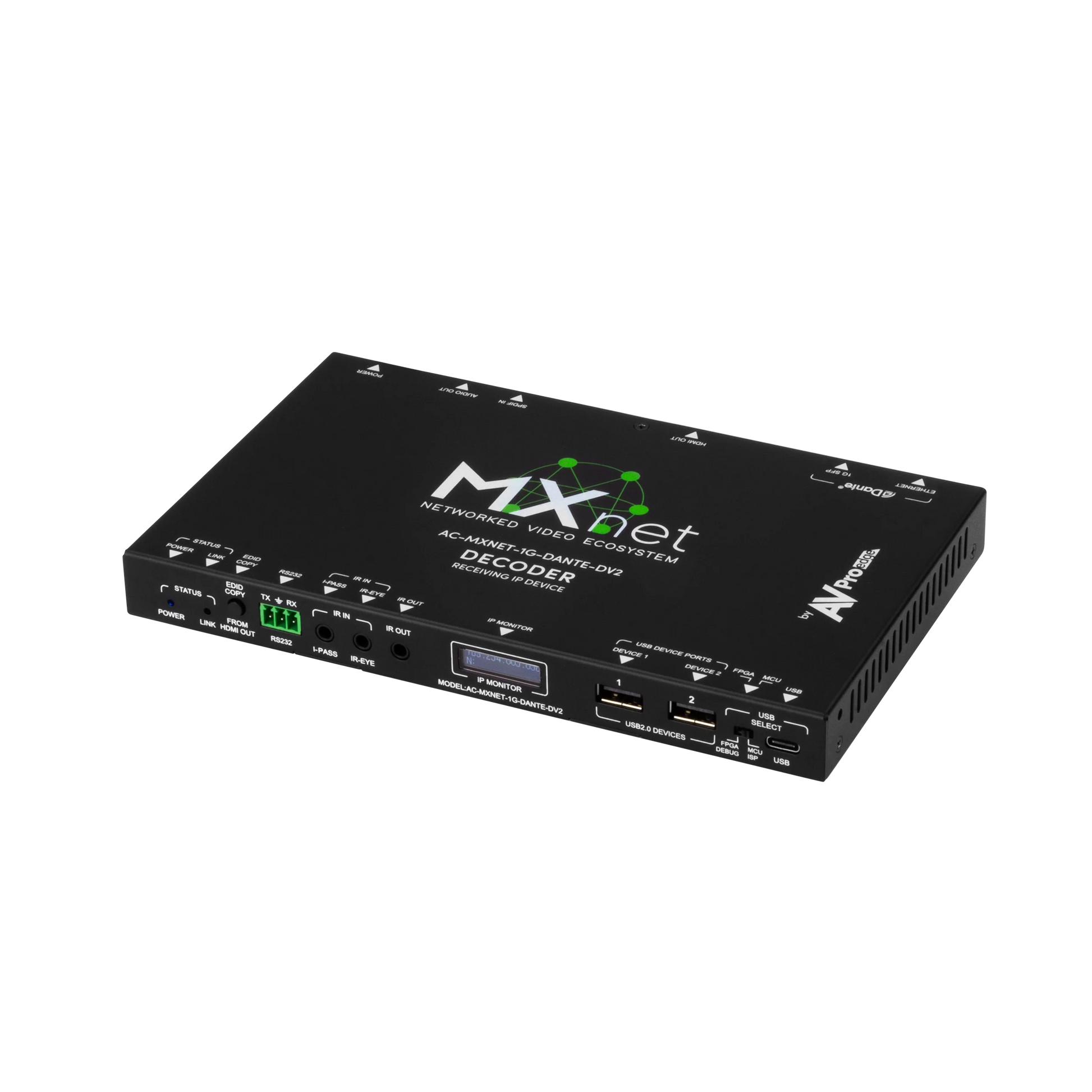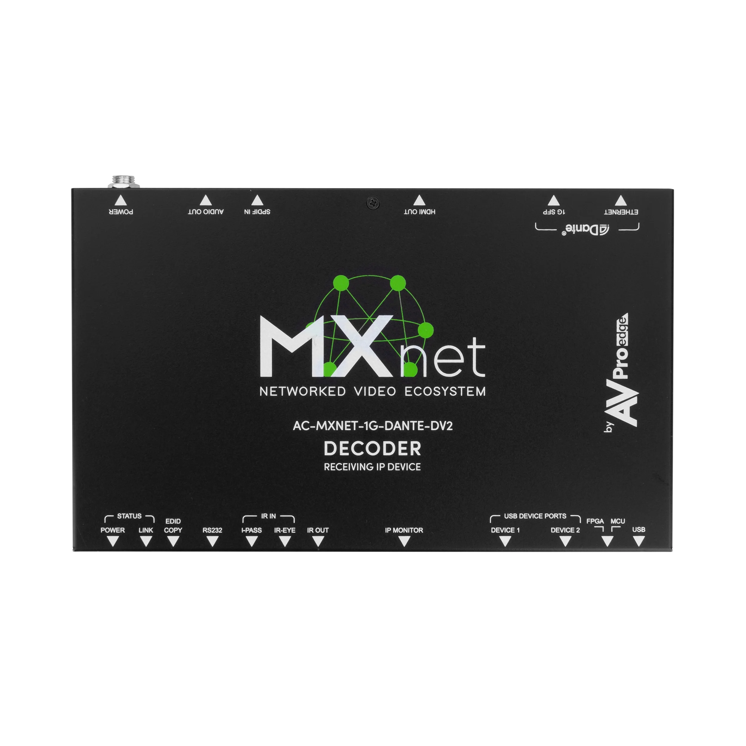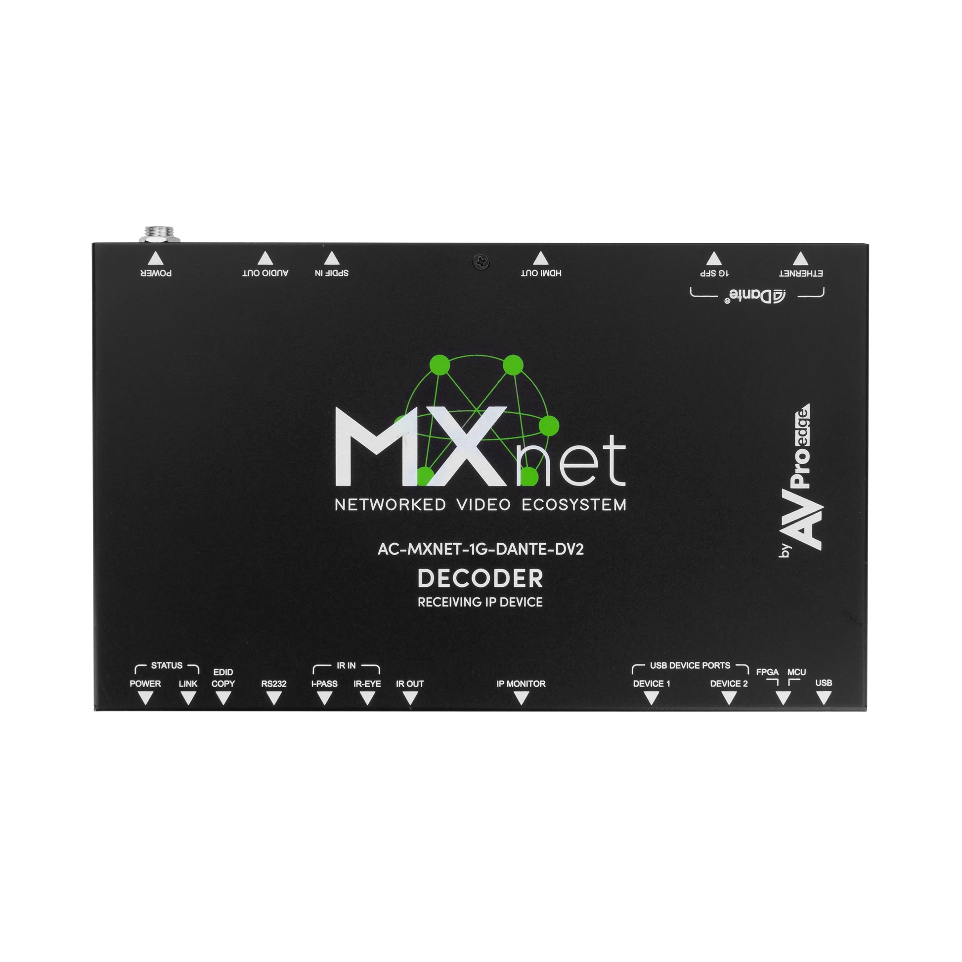 Sowohl der AC-MXNET-1G-DANTE-DV2 als auch sein komplementärer Encoder AC-MXNET-1G-DANTE-EV2 passen nahtlos in dasselbe Zubehör-Rack wie die Standard-Encoder und -Decoder der MXnet EVO II Serie.