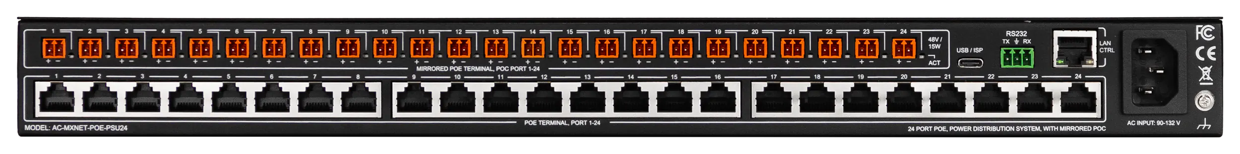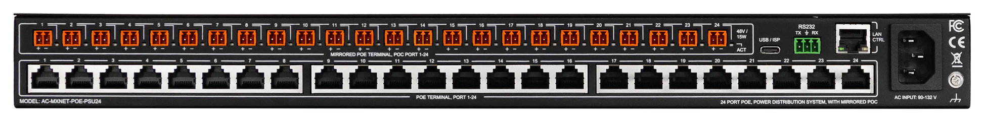 - 370 Watt Leistung – 24 Ports für PoE-Stromversorgung sowie 24 2-polige Phoenix-Anschlüsse verteilen sicher insgesamt 370 Watt für den Systembetrieb.