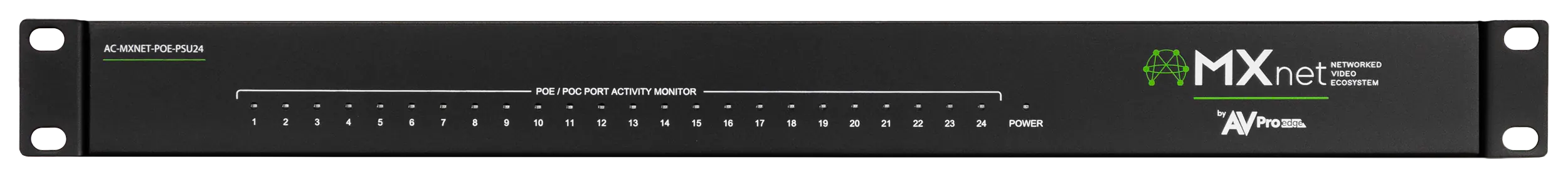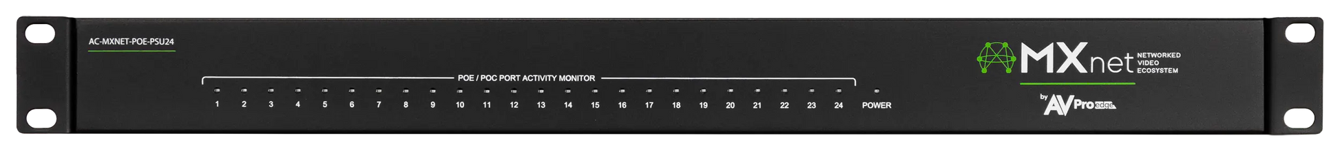 Das AVPro Edge AC-MXNET-POE-PSU24 ist eine chassisbasierte DC- und PoE-Stromversorgungseinheit mit mehreren Spannungen für bis zu 48 Geräte. Es können 24 PoE-Geräte wie die AC-MXNET-10G CBOX und AC-MXNET-10G-TCVRs mit Strom versorgt werden, ebenso wie andere Geräte wie Extender.