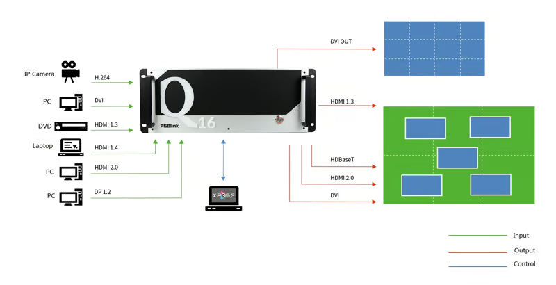 Q16pro eignet sich ideal für Multi-Screen-Splicing und Multi-Display-Systeme und bietet Pixel-genaue Präzision, unabhängig davon, ob es sich um konventionelle oder benutzerdefinierte Auflösungen und Fensterlayouts handelt.