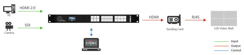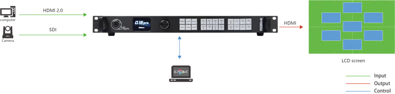 Q16pro Gen2 1U kann über XPOSE oder eine Drittanbieter-App/Controller via Open API ferngesteuert werden. Es vereint ein robustes Design, erstklassige Videoverarbeitung und Bildqualität, ultra-niedrige Latenz, vielfältige 4K-Konnektivität, Livestreaming-Funktionen und eine benutzerfreundliche Bedienung – ideal für moderne kommerzielle Display-Anwendungen wie:
