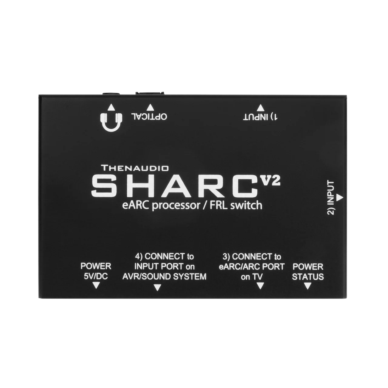 Der SHARC-V2 von THENAUDIO ist ein eARC-Audioprozessor mit zwei Zonen, der über einen rauscharmen, hochwertigen DAC verfügt und über einen 3,5-mm-Analogausgang eine hohe Dynamik mit nativer Unterstützung von Abtastraten bis zu 384 kHz bietet. Zusätzlich fungiert der SHARC-V2 als fortschrittlicher HDMI-2.1-A/V-Umschalter mit 8K, 48 Gbps (FRL 6) und CEC-Steuerung, basierend auf einer integrierten, abgespeckten Version des THENAUDIO GUIDE-Switches.