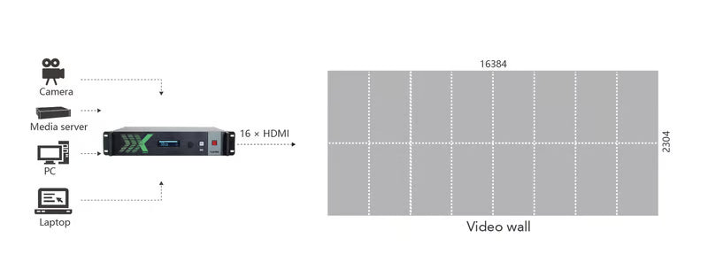 Der X2 ist eine leistungsstarke und dennoch kostengünstige Lösung, ideal für Videowall-Anwendungen mit Unterstützung für Multi-Window- und Multi-Layer-Videokonfigurationen über die gesamte Ausgabefläche.