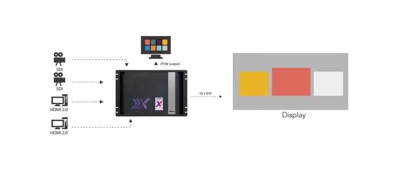 Dank seiner Multi-Mode-Funktionalität kann der X7 nicht nur für durchgehende Video-Wall-Displays und klassische Präsentationsanwendungen konfiguriert werden, sondern auch für Multi-View-Kontrollräume, 3D-Anwendungen und Matrix-Routing mit vollständiger Signal- und Auflösungsunabhängigkeit.